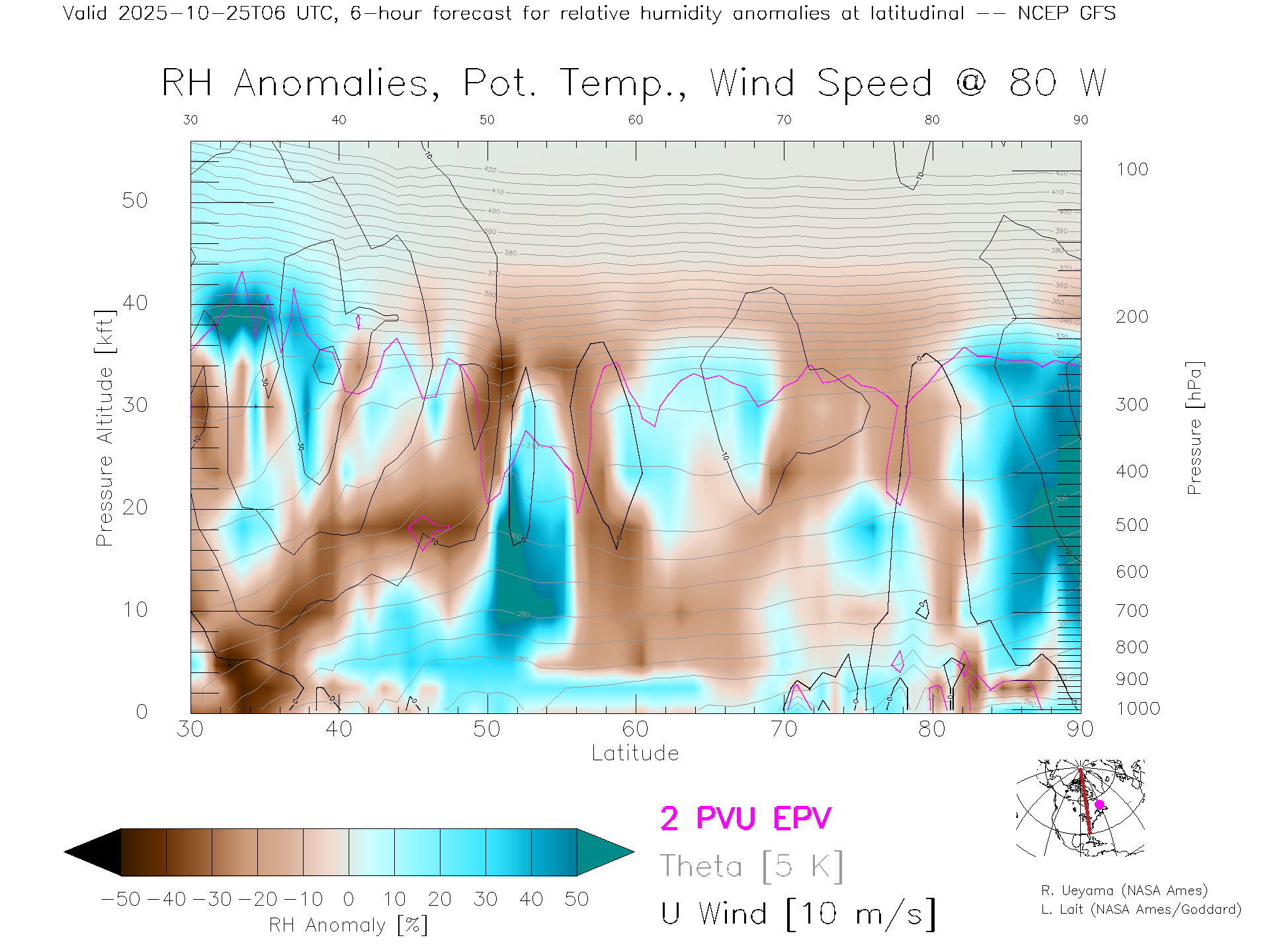 NCEP GFS Forecast Rel. Hum. X-Section (80 W)