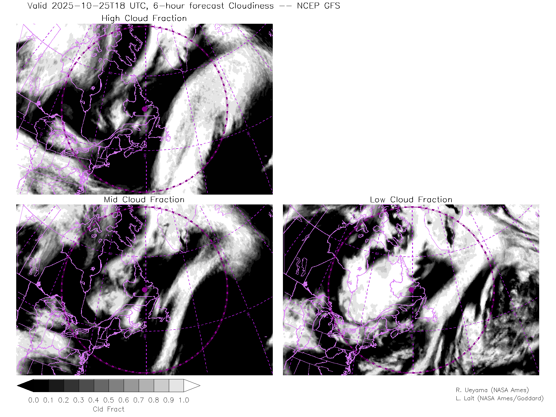 NCEP GFS Forecast Cloud Fraction (High, Mid, Low)
