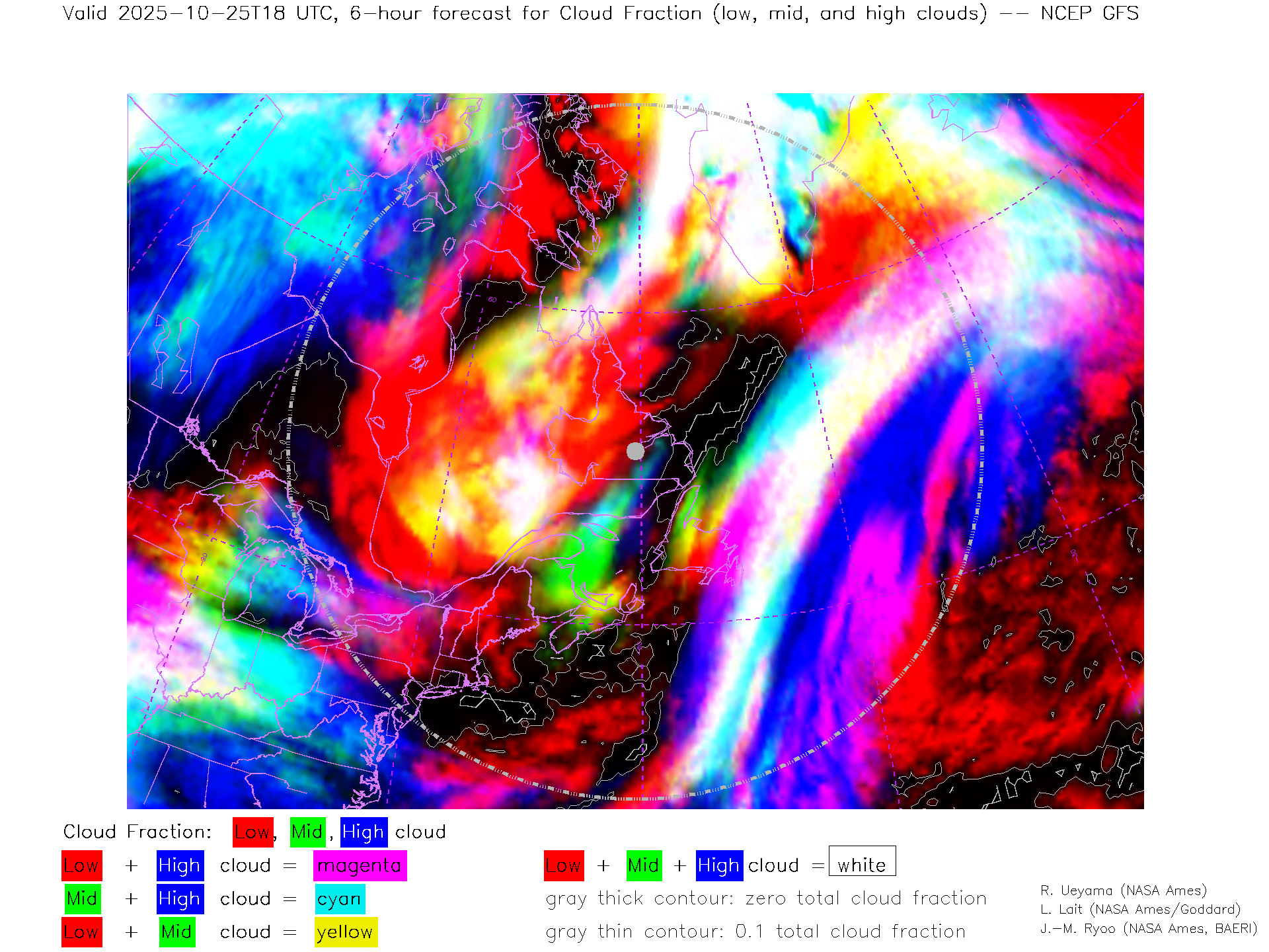 NCEP GFS Forecast Low-, Mid- and High-level Cloud Fraction