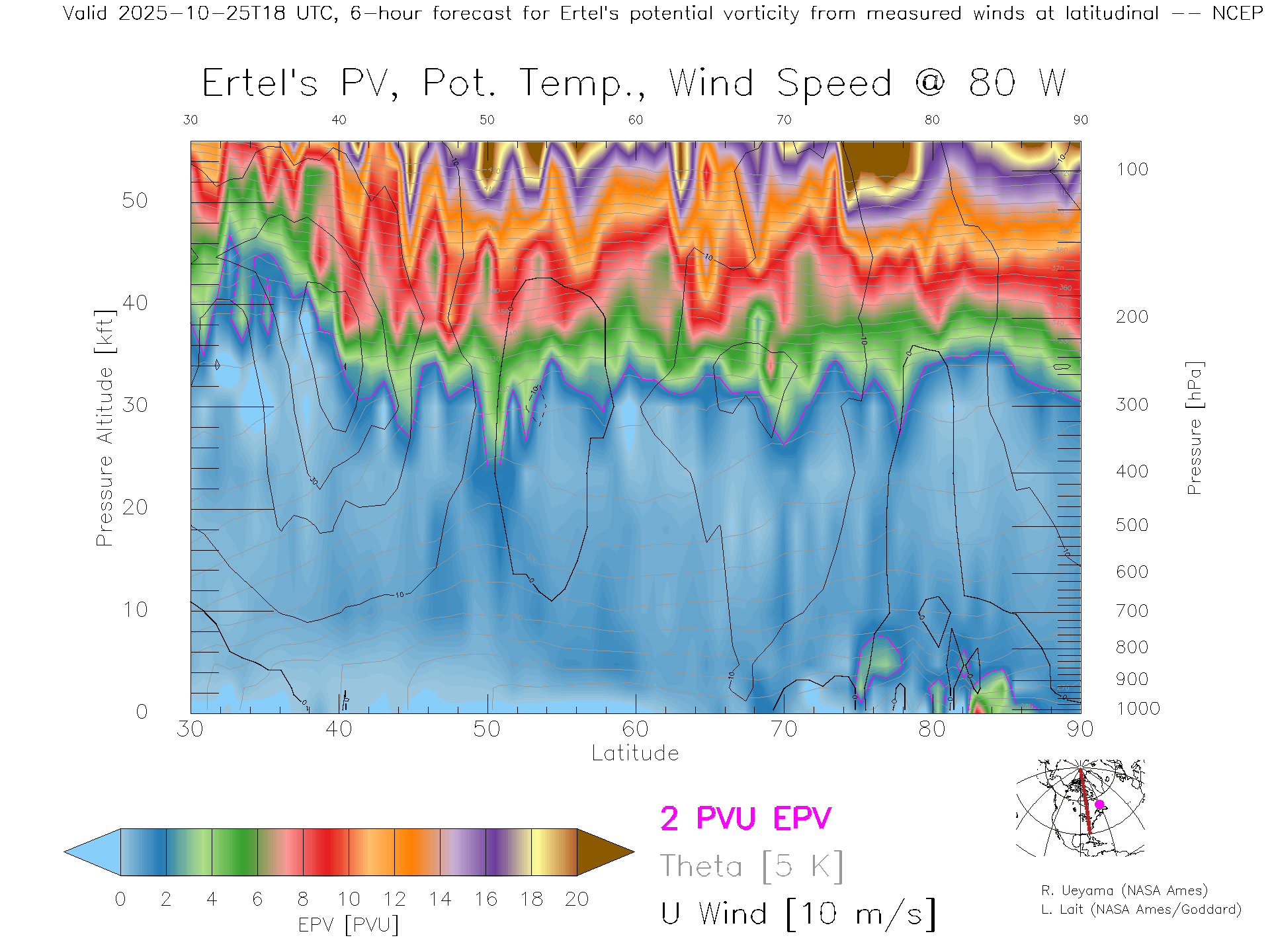 NCEP GFS Forecast PV X-Section (80 W)