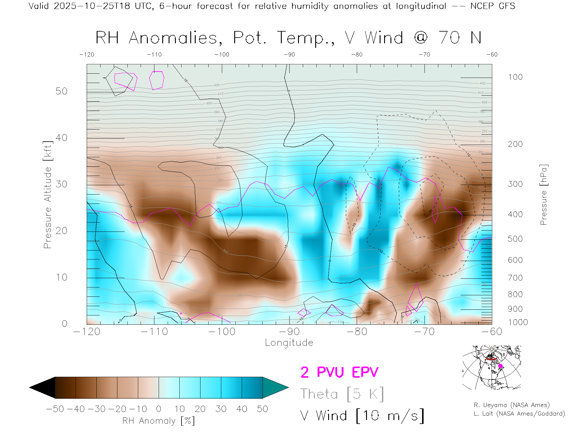 NCEP GFS Forecast Rel. Hum. X-Section (70 N)
