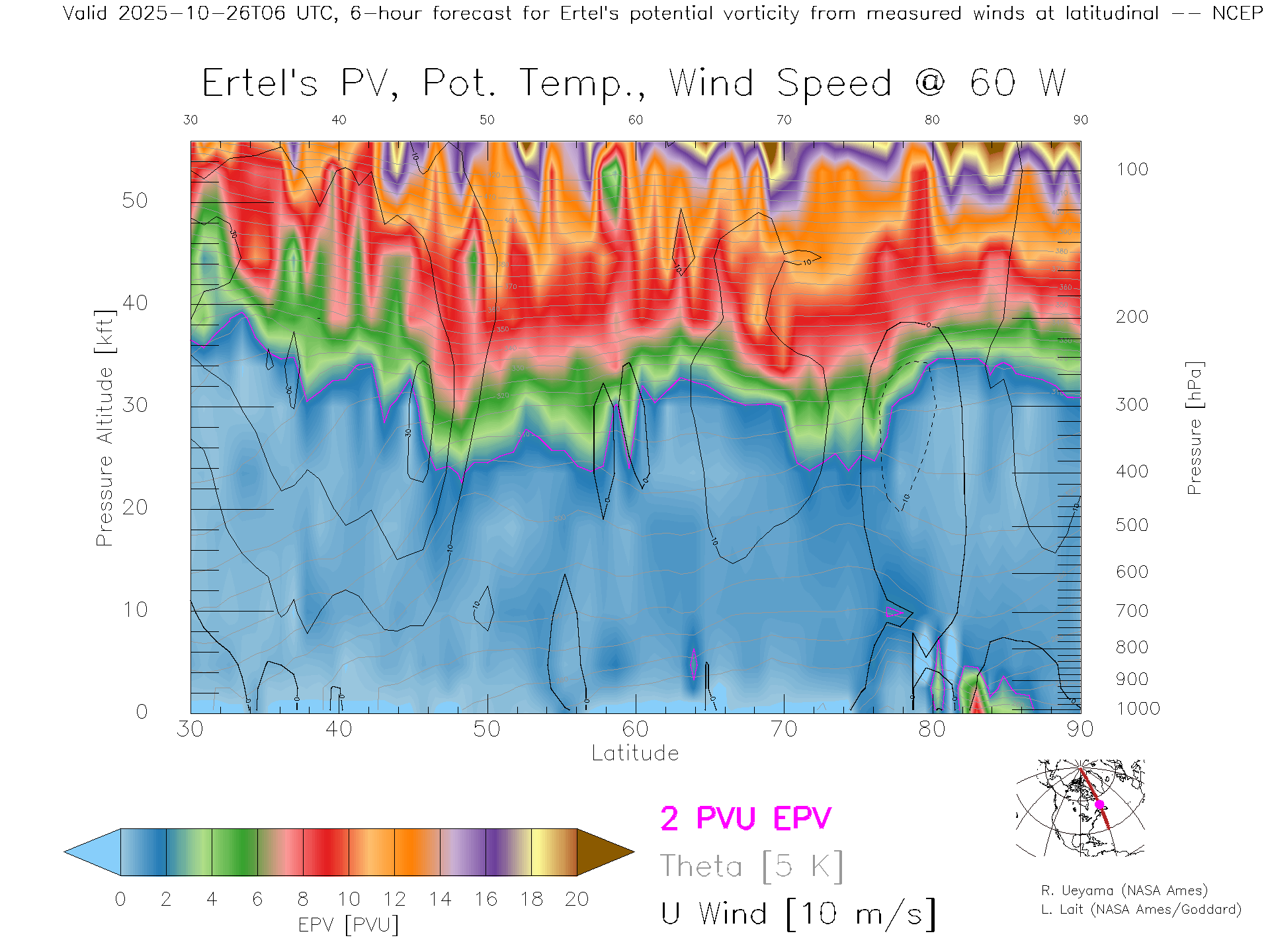 NCEP GFS Forecast PV X-Section (60 W)