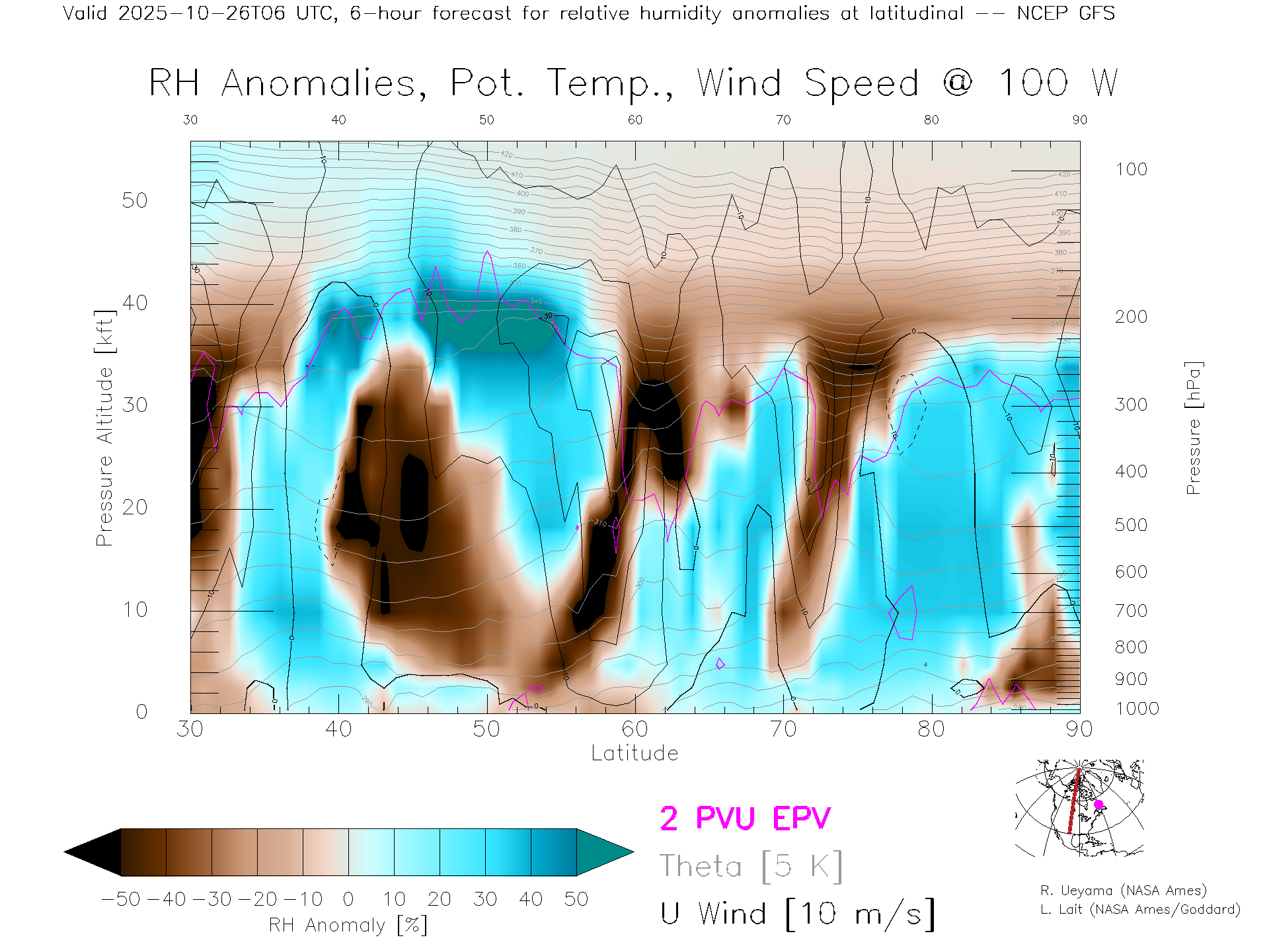 NCEP GFS Forecast Rel. Hum. X-Section (100 W)