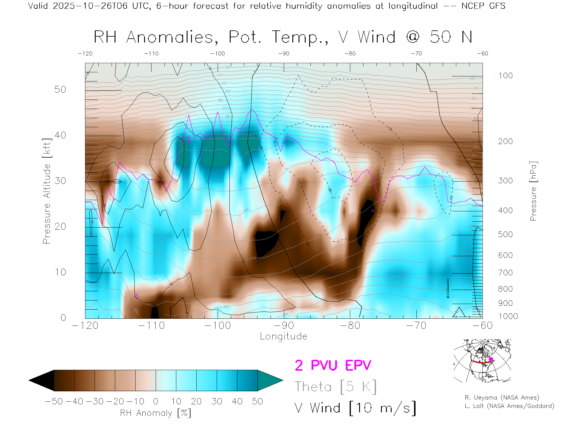 NCEP GFS Forecast Rel. Hum. X-Section (50 N)