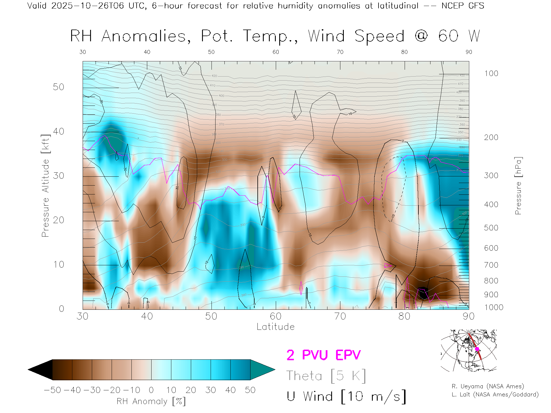 NCEP GFS Forecast Rel. Hum. X-Section (60 W)