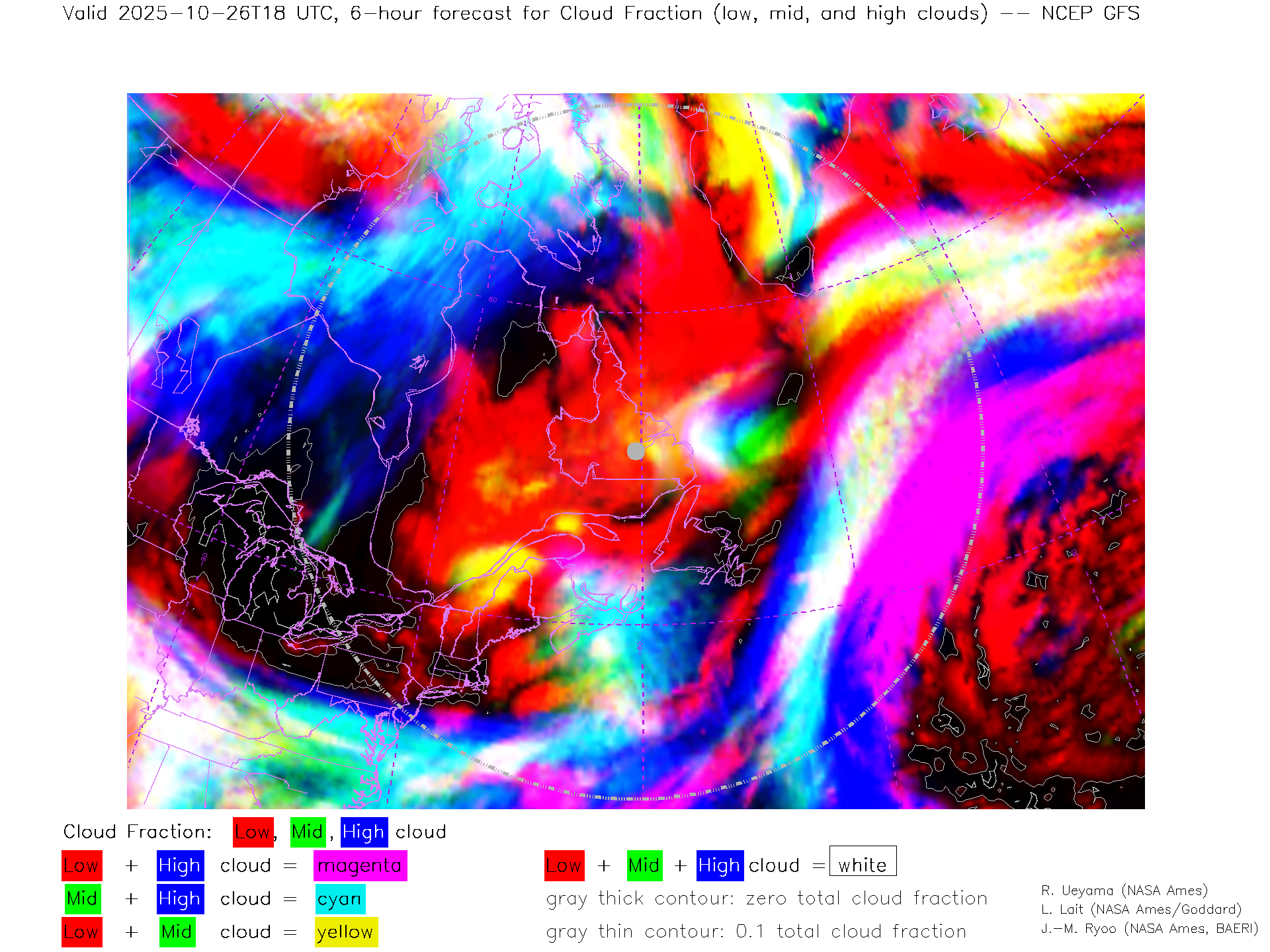 NCEP GFS Forecast Low-, Mid- and High-level Cloud Fraction