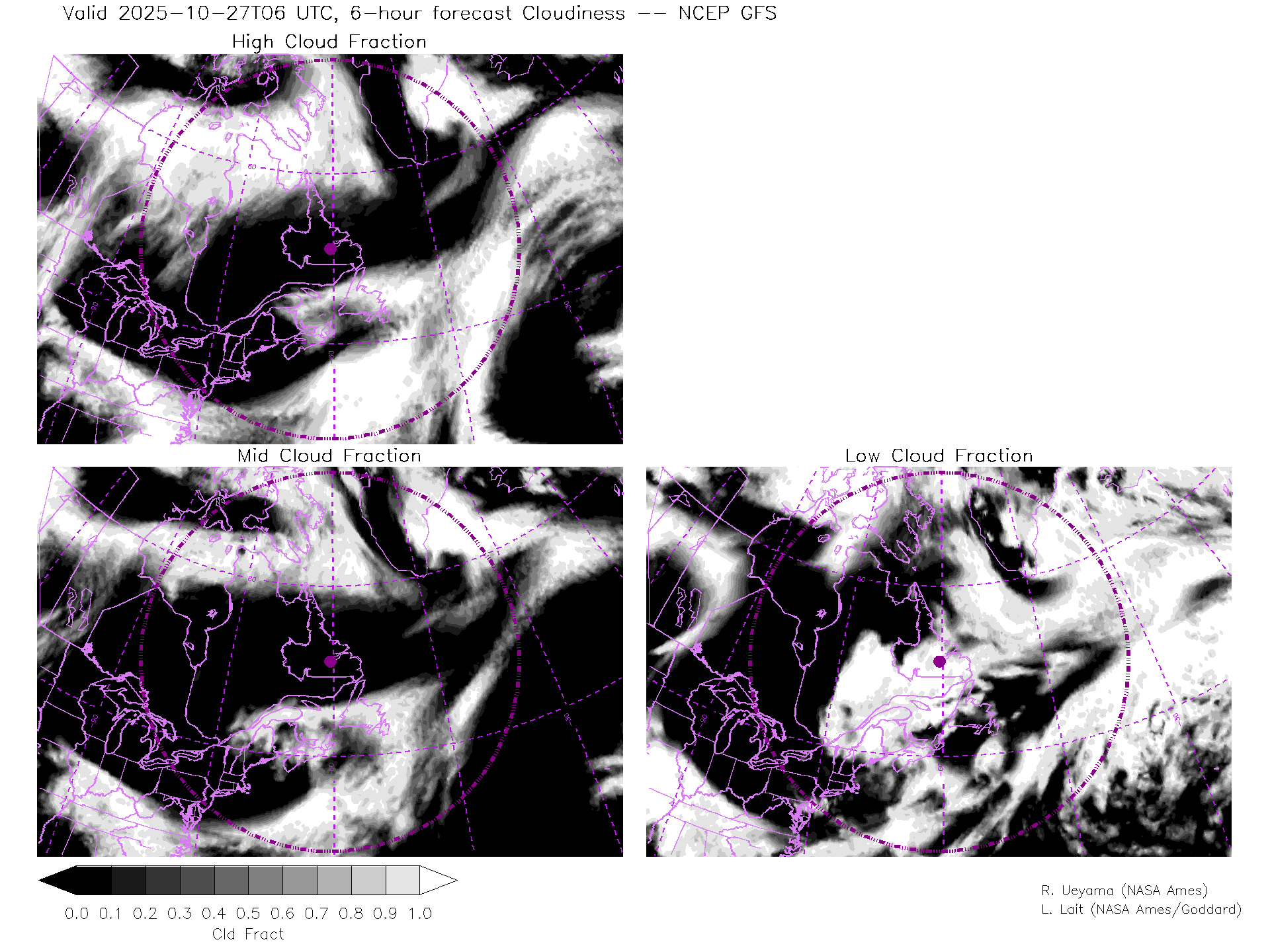 NCEP GFS Forecast Cloud Fraction (High, Mid, Low)