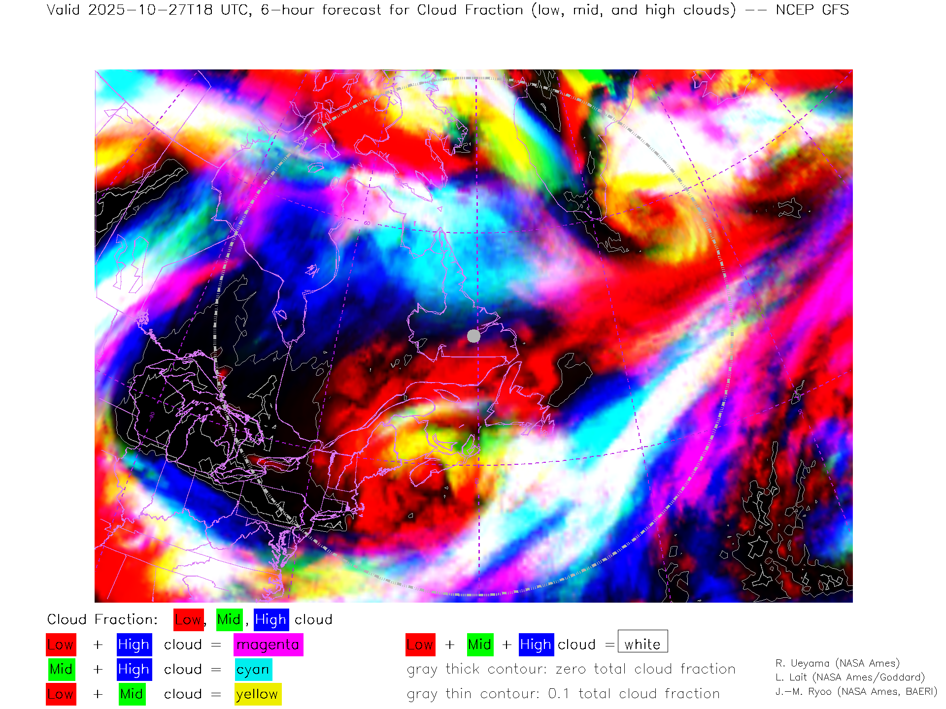 NCEP GFS Forecast Low-, Mid- and High-level Cloud Fraction