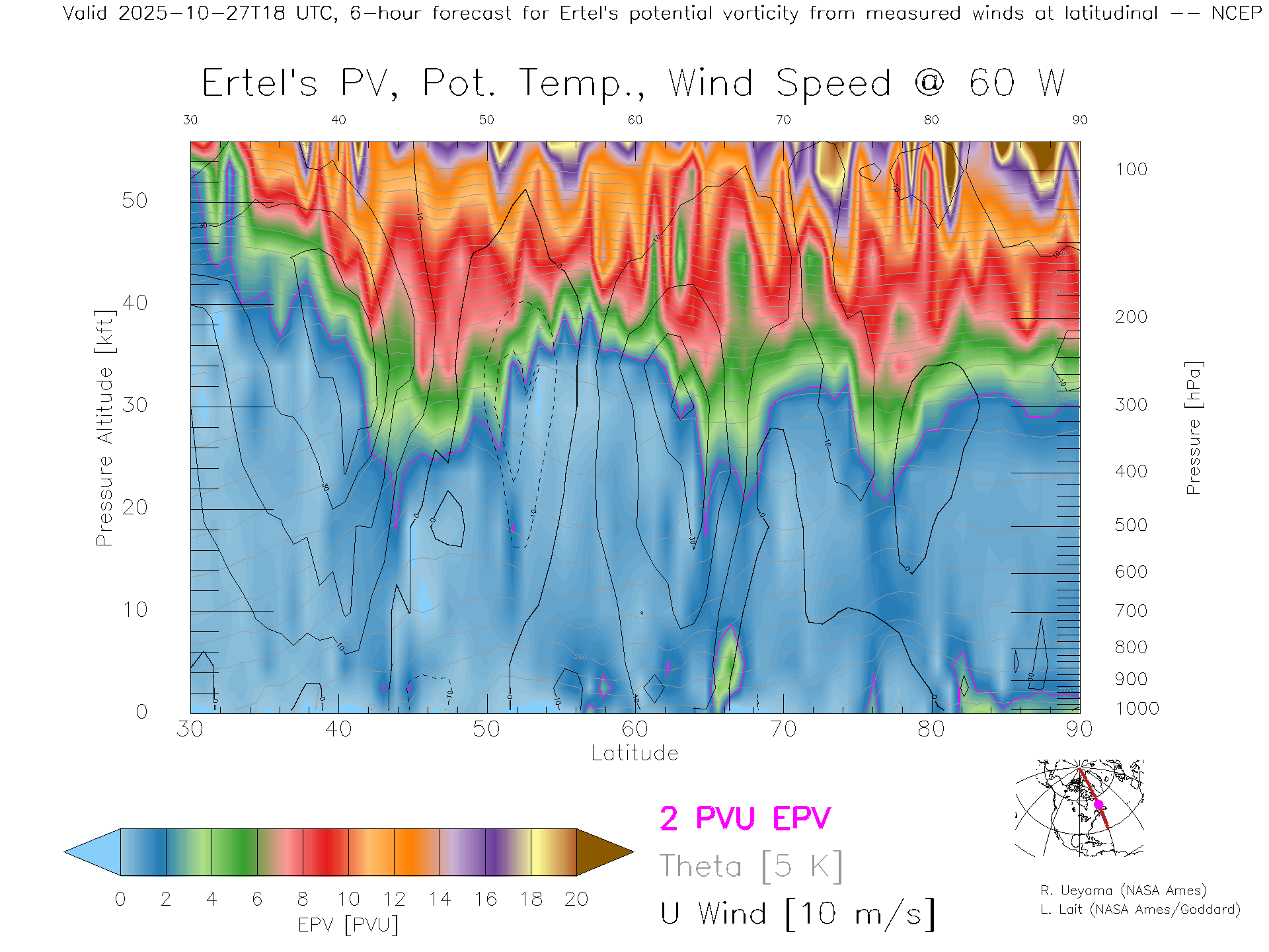 NCEP GFS Forecast PV X-Section (60 W)