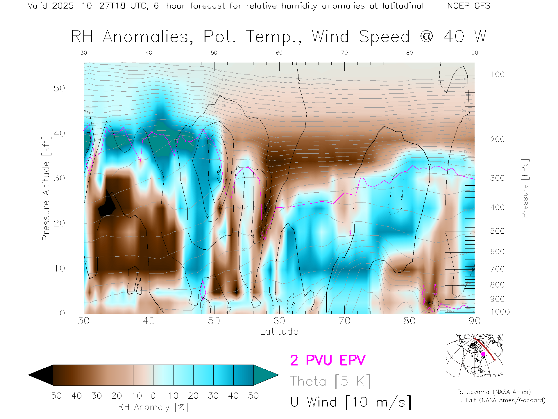 NCEP GFS Forecast Rel. Hum. X-Section (40 W)