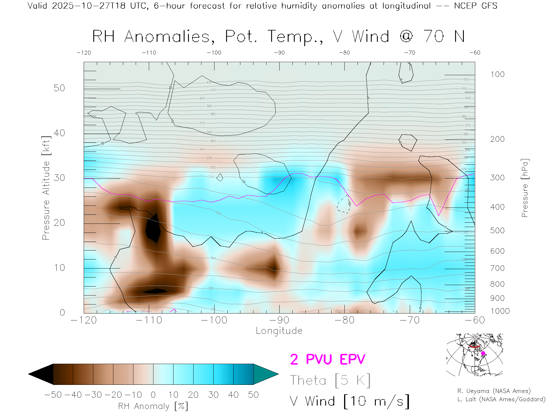 NCEP GFS Forecast Rel. Hum. X-Section (70 N)
