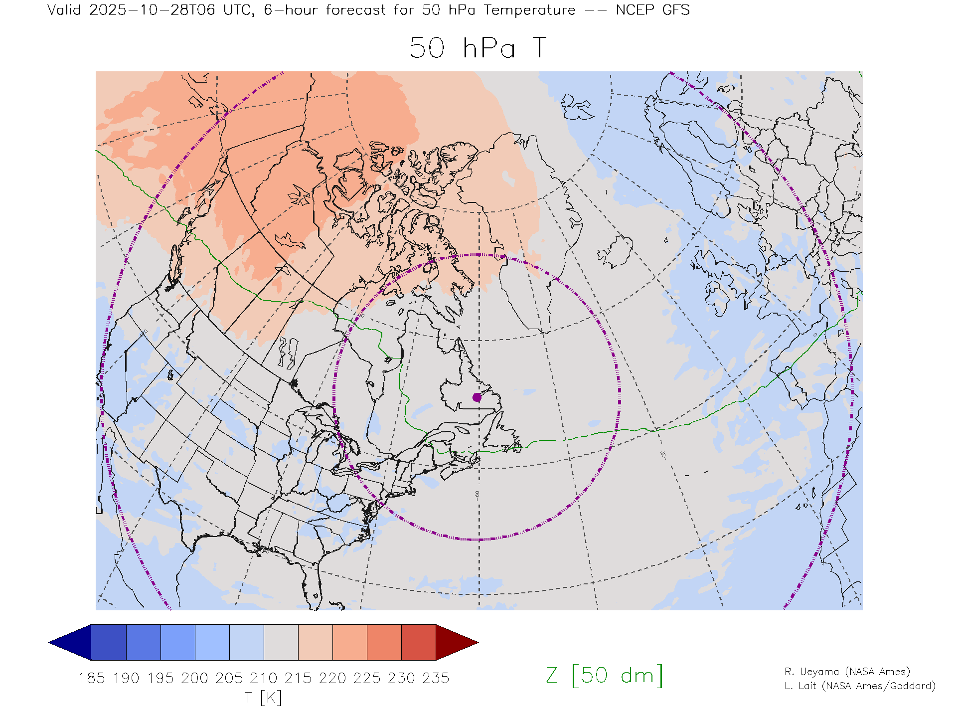 NCEP GFS Forecast 50 hPa Temp.