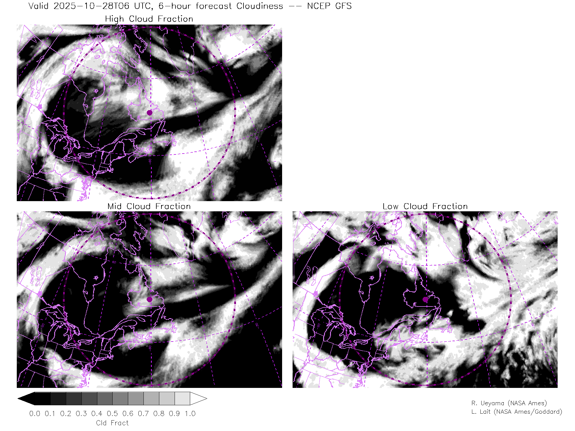 NCEP GFS Forecast Cloud Fraction (High, Mid, Low)