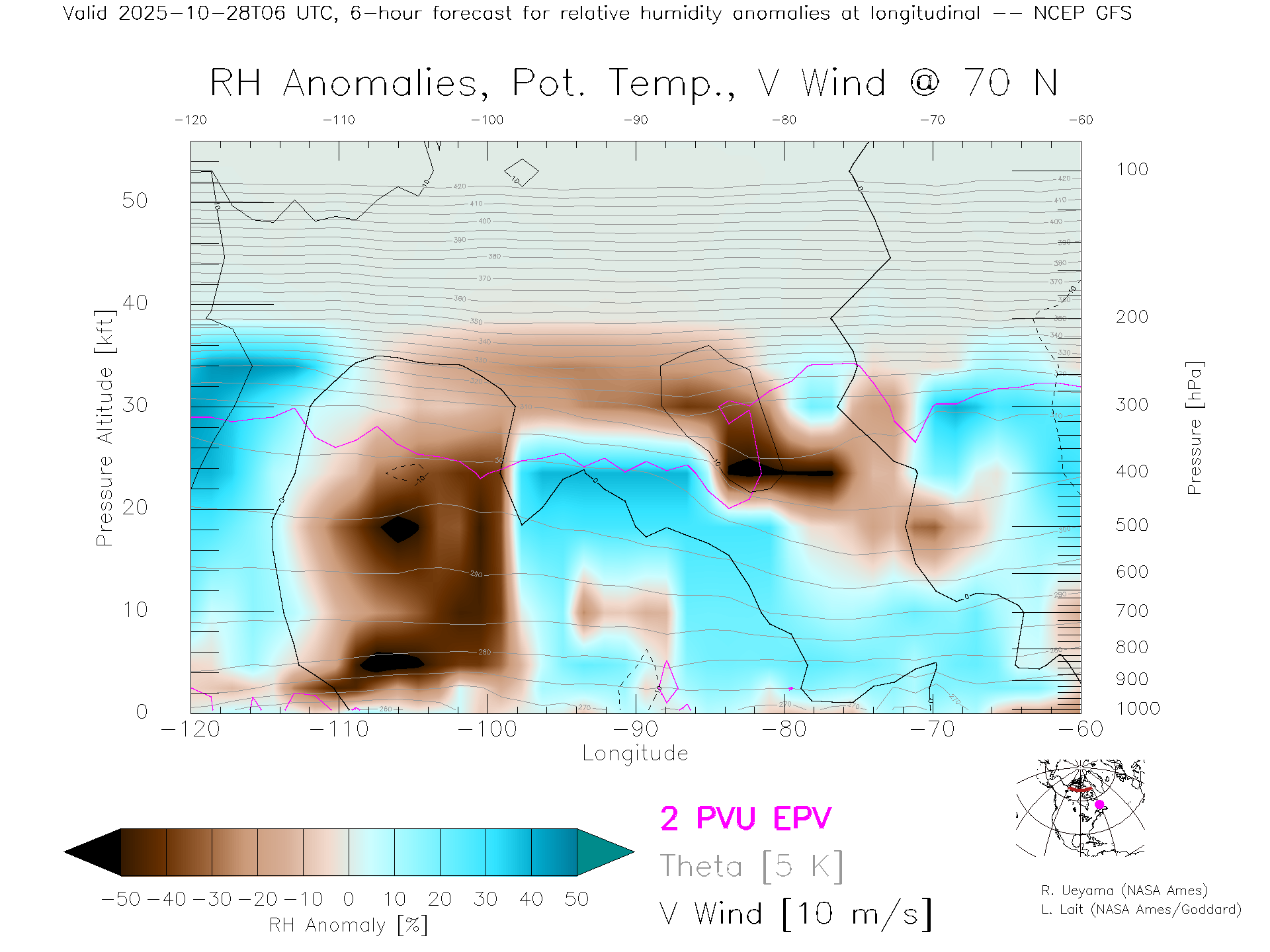 NCEP GFS Forecast Rel. Hum. X-Section (70 N)