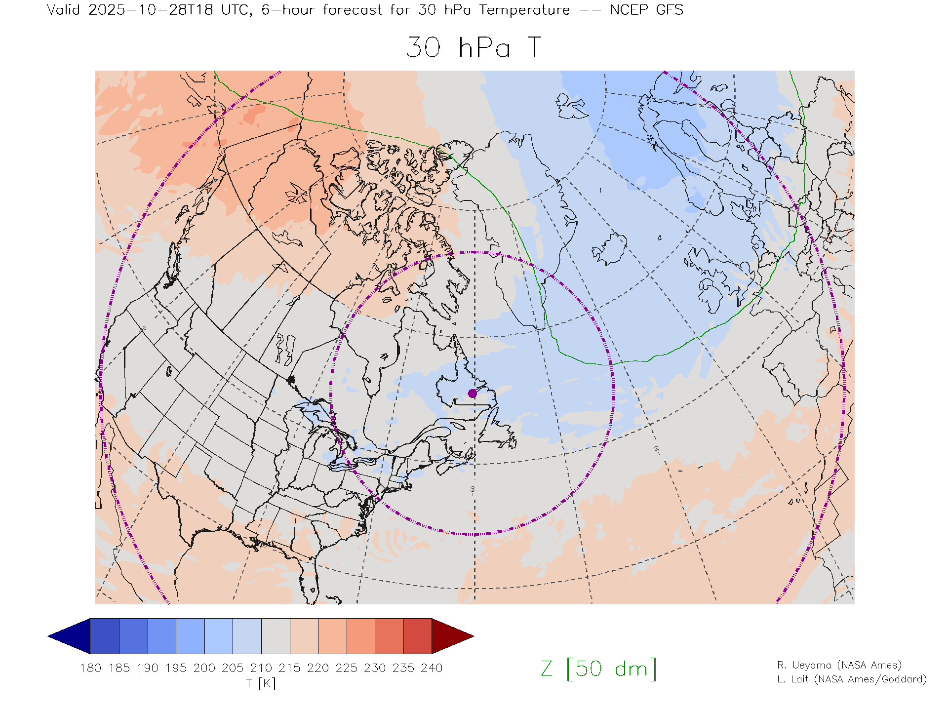 NCEP GFS Forecast 30 hPa Temp.