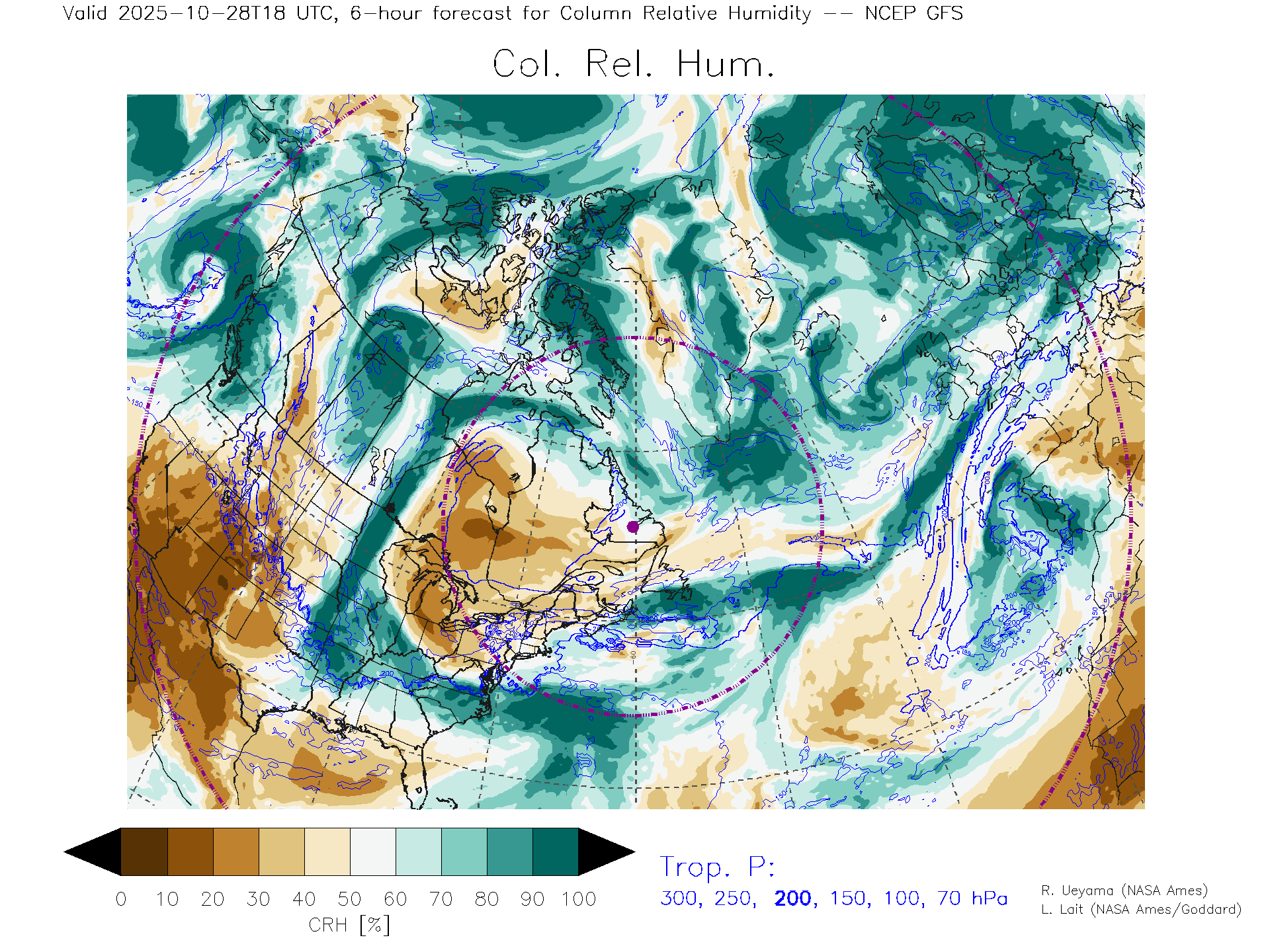 NCEP GFS Forecast Column Rel. Humidity