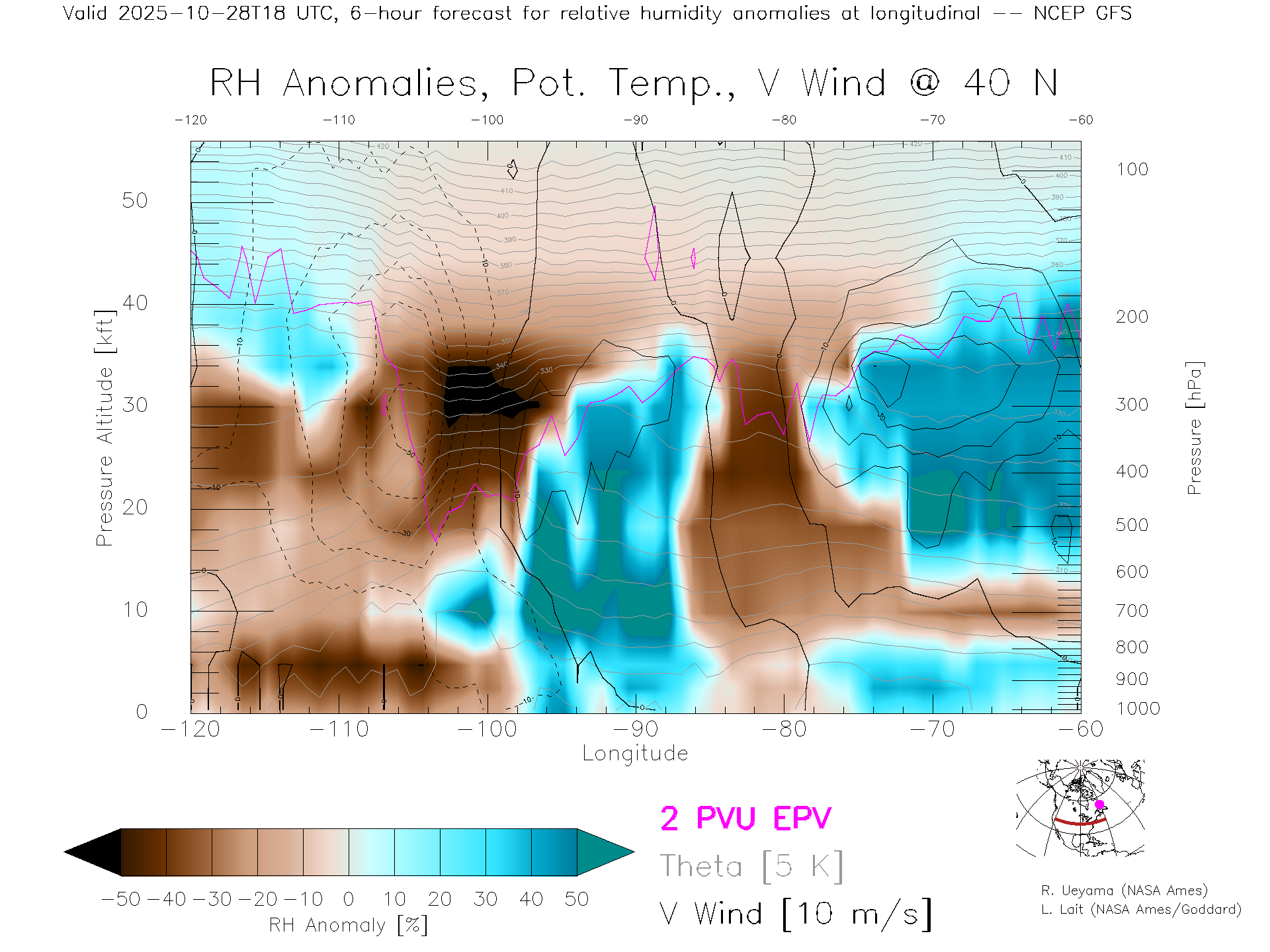 NCEP GFS Forecast Rel. Hum. X-Section (40 N)
