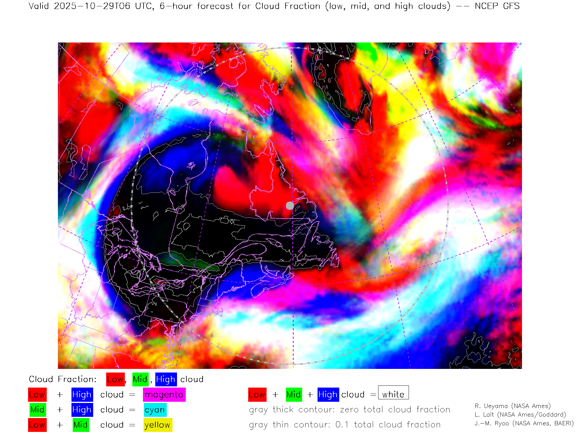 NCEP GFS Forecast Low-, Mid- and High-level Cloud Fraction