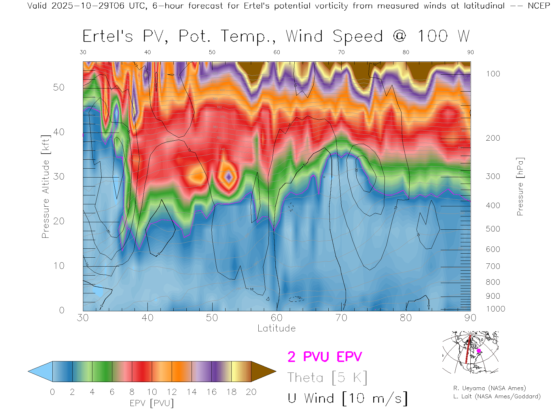 NCEP GFS Forecast PV X-Section (100 W)