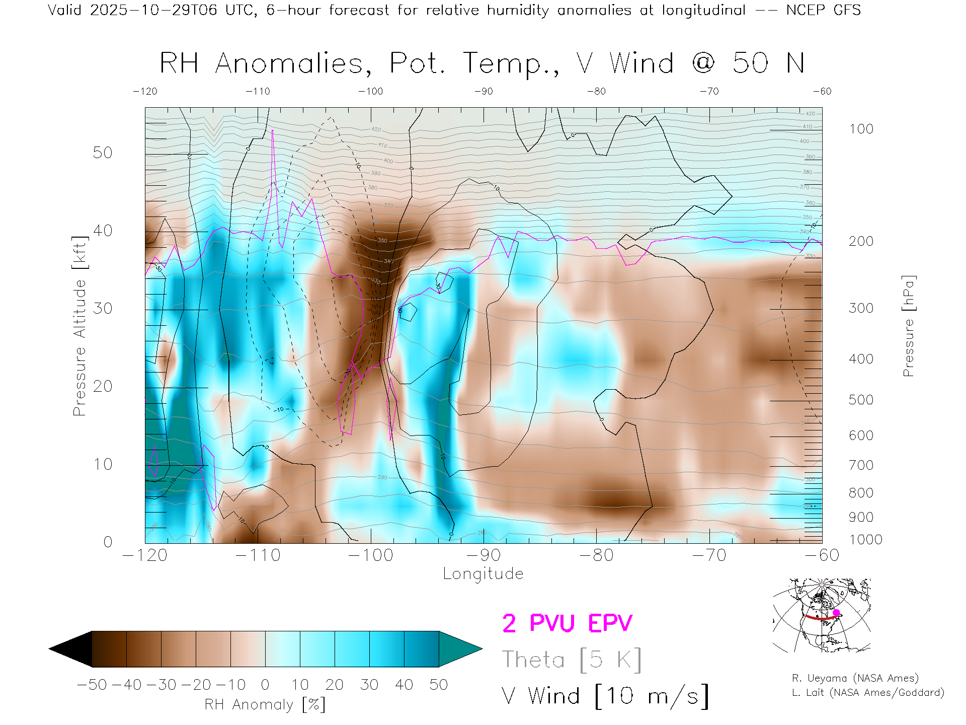 NCEP GFS Forecast Rel. Hum. X-Section (50 N)