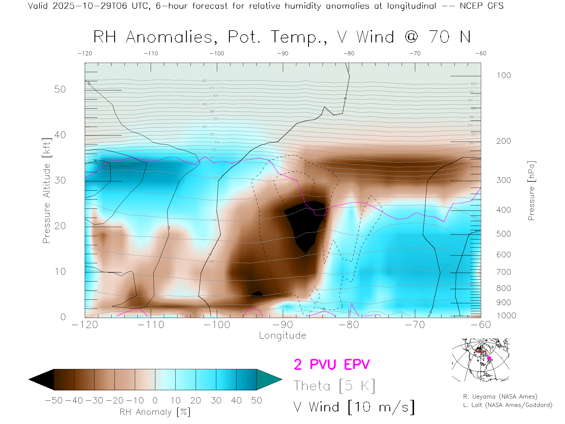 NCEP GFS Forecast Rel. Hum. X-Section (70 N)