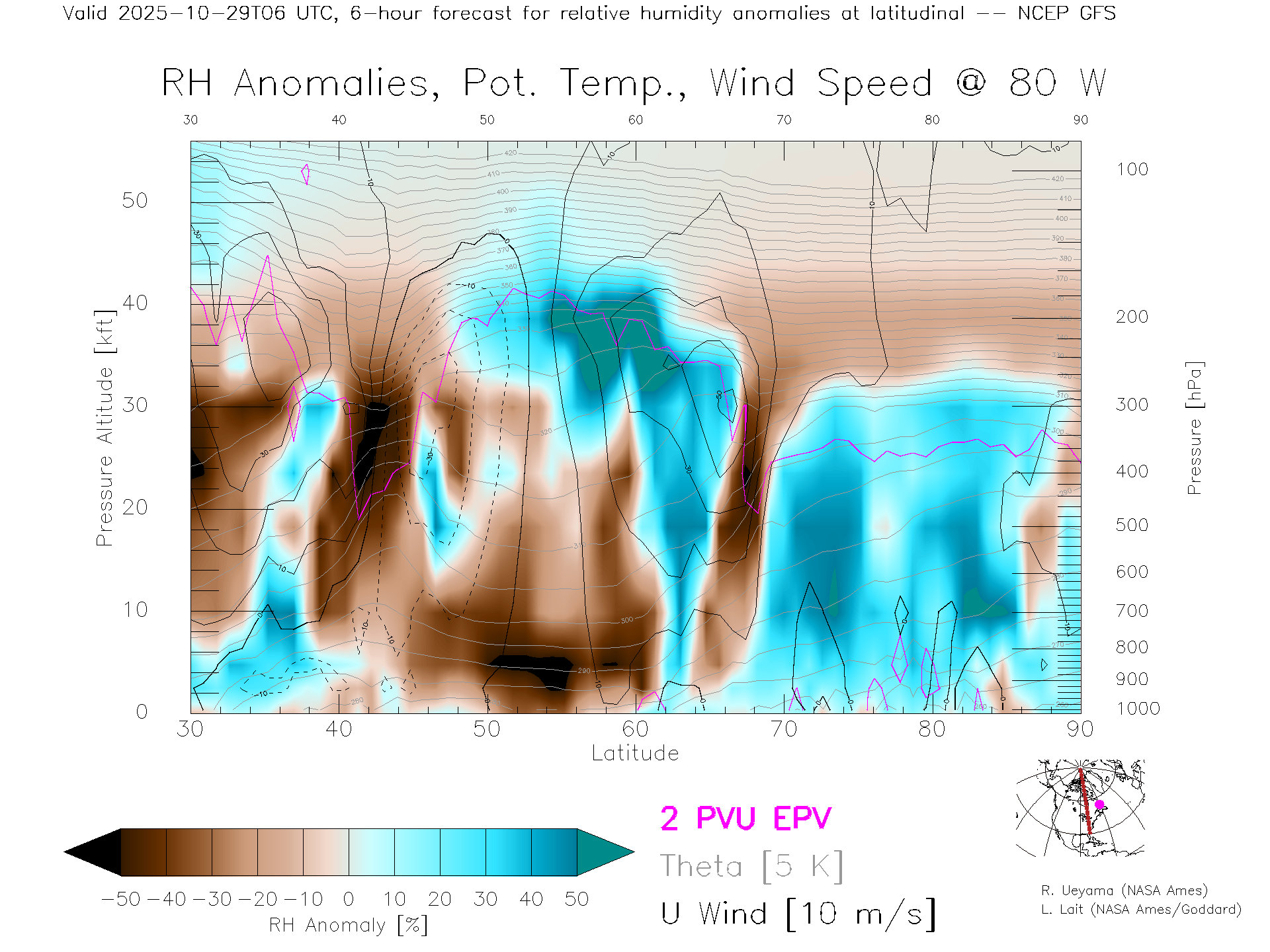 NCEP GFS Forecast Rel. Hum. X-Section (80 W)
