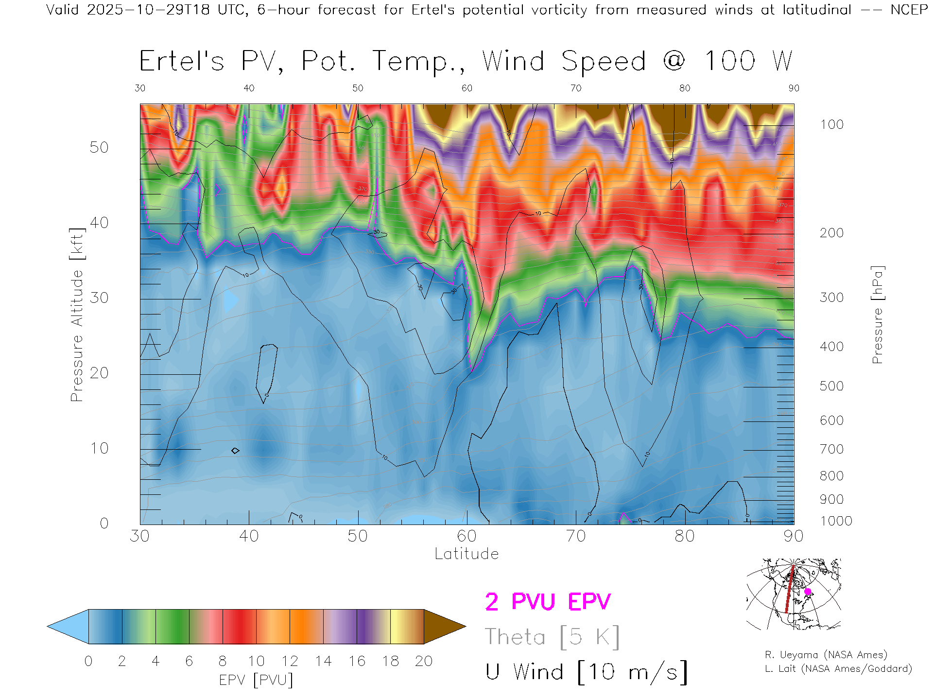 NCEP GFS Forecast PV X-Section (100 W)