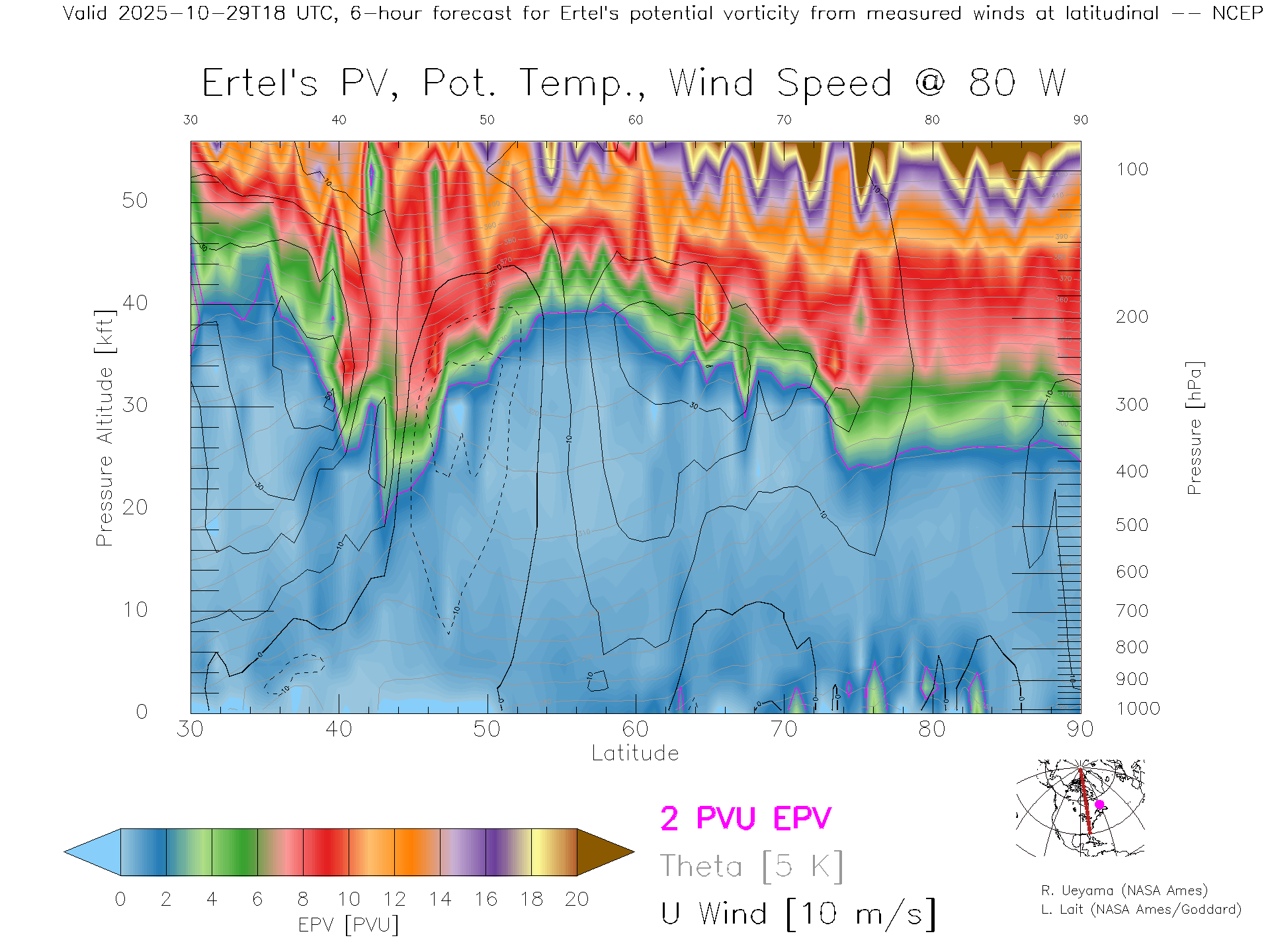 NCEP GFS Forecast PV X-Section (80 W)