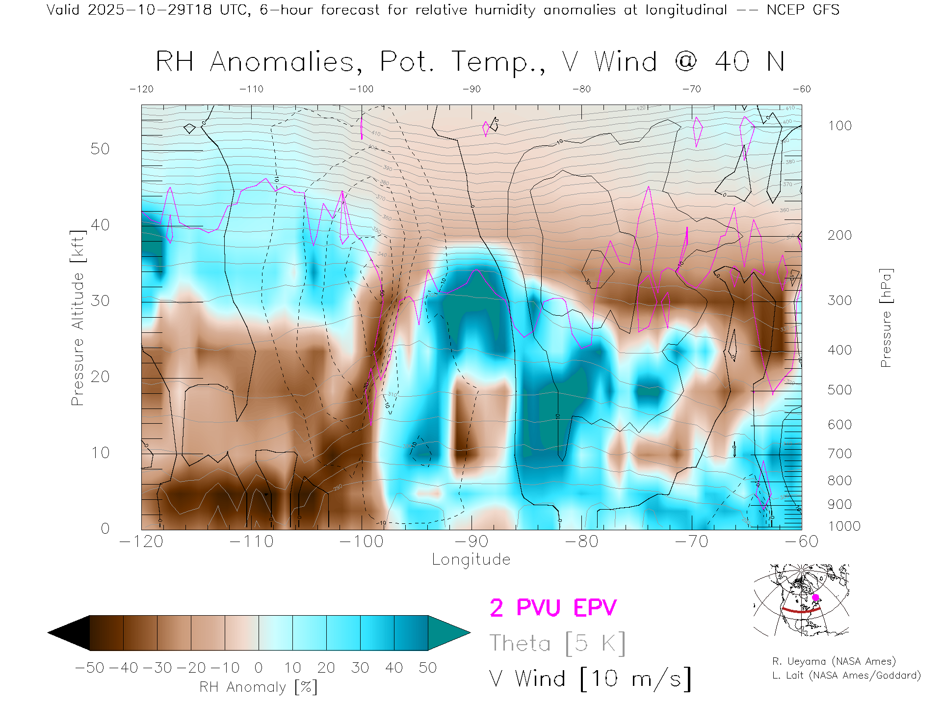 NCEP GFS Forecast Rel. Hum. X-Section (40 N)