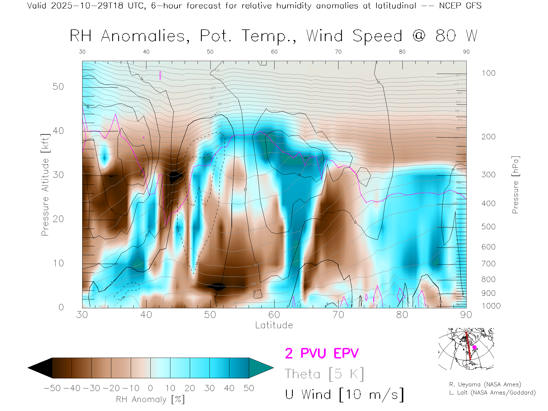 NCEP GFS Forecast Rel. Hum. X-Section (80 W)
