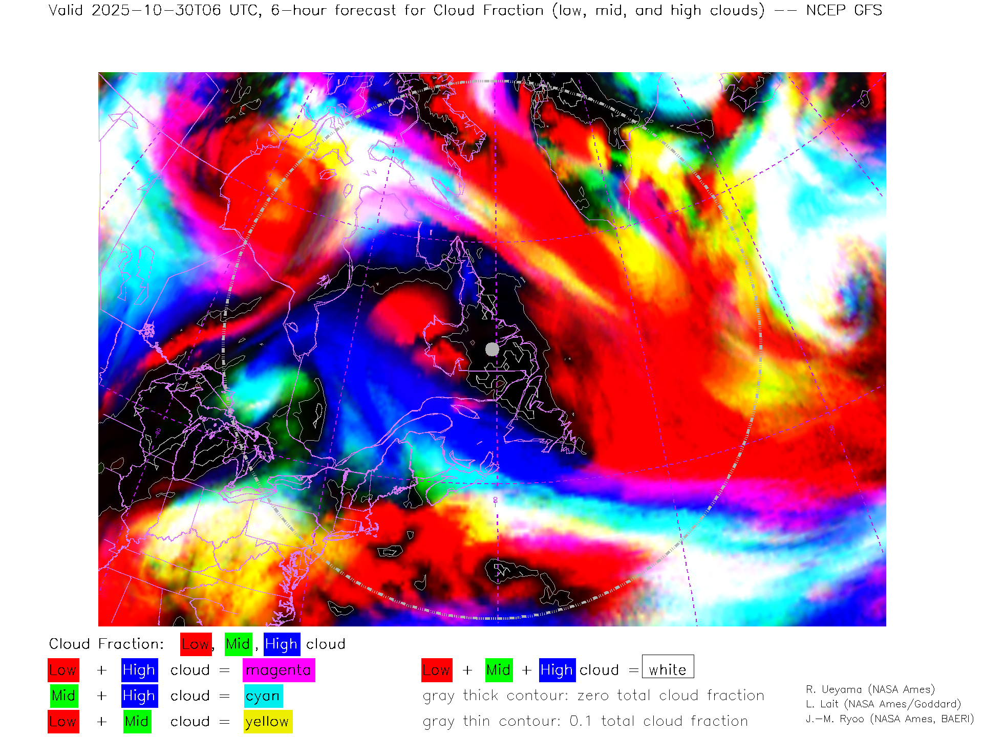 NCEP GFS Forecast Low-, Mid- and High-level Cloud Fraction