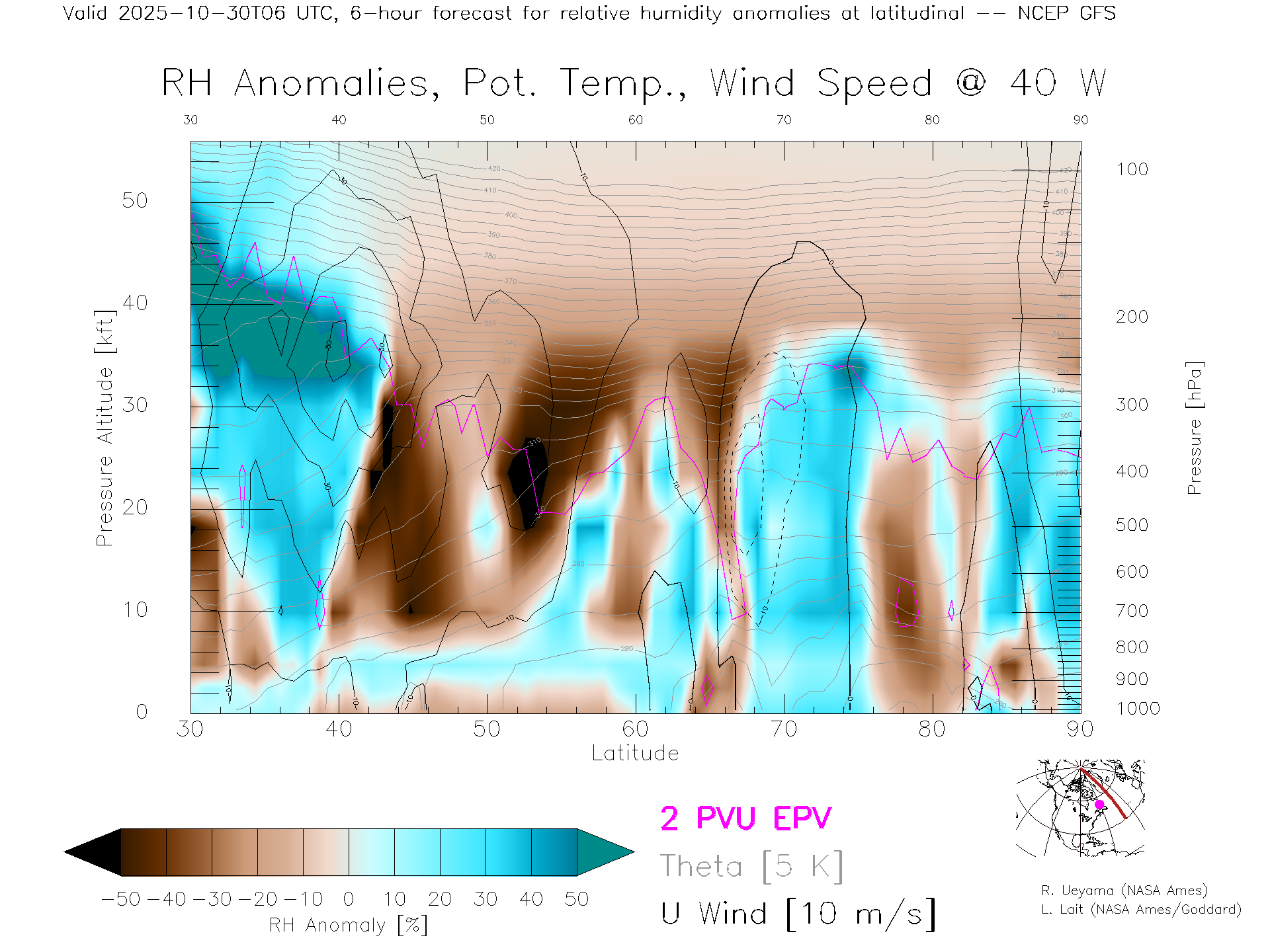 NCEP GFS Forecast Rel. Hum. X-Section (40 W)