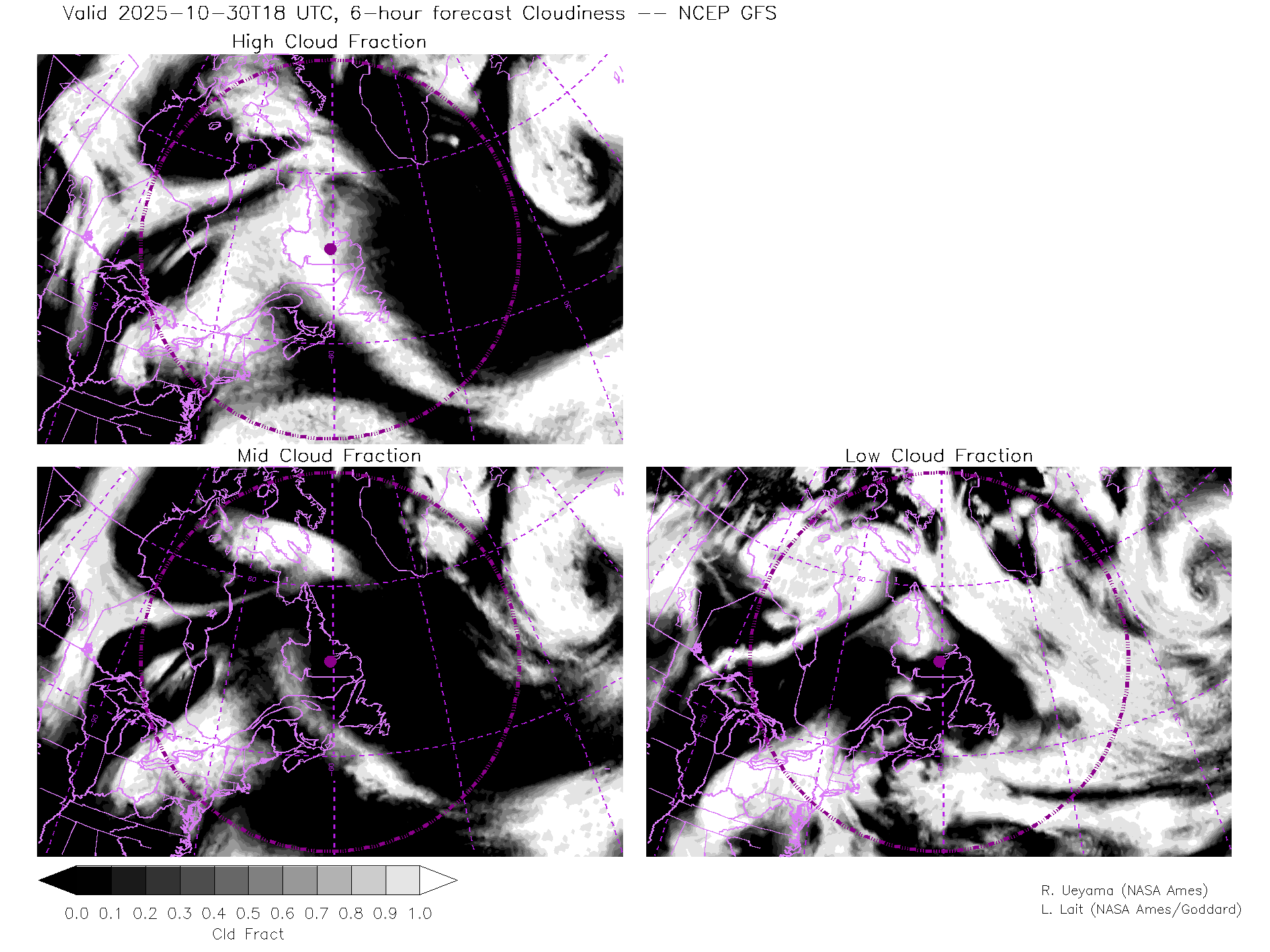 NCEP GFS Forecast Cloud Fraction (High, Mid, Low)