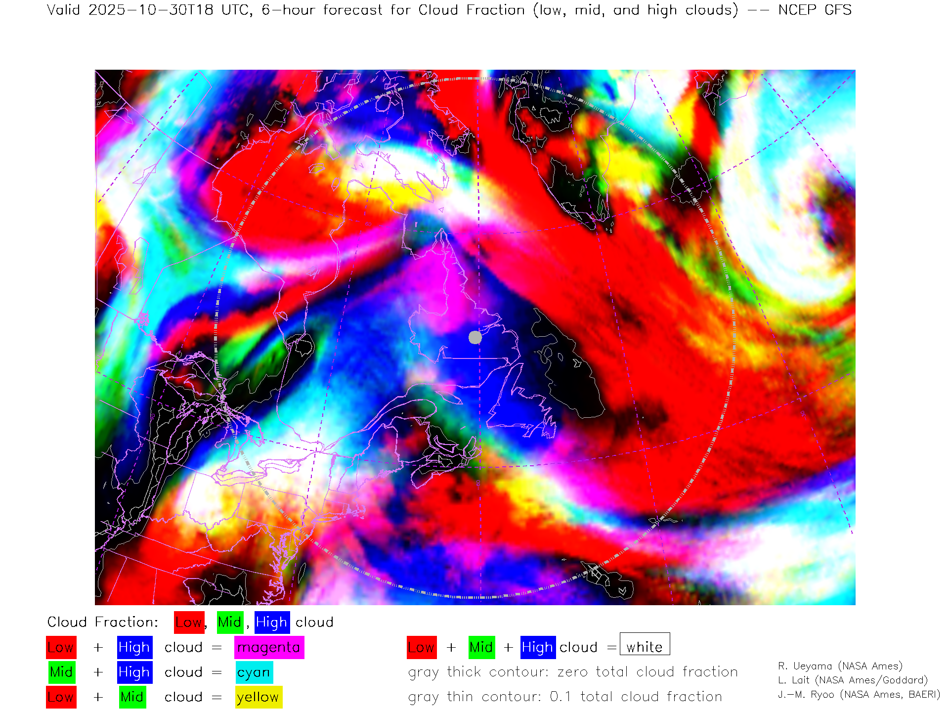 NCEP GFS Forecast Low-, Mid- and High-level Cloud Fraction