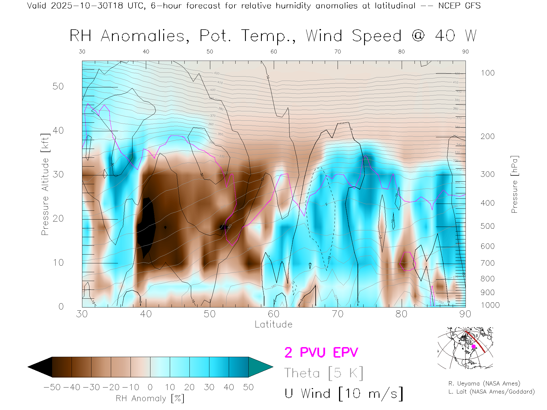 NCEP GFS Forecast Rel. Hum. X-Section (40 W)