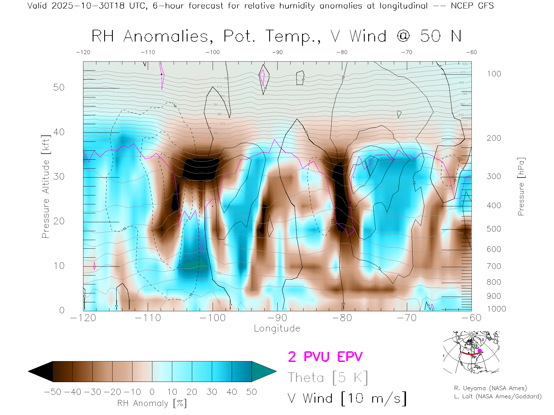 NCEP GFS Forecast Rel. Hum. X-Section (50 N)