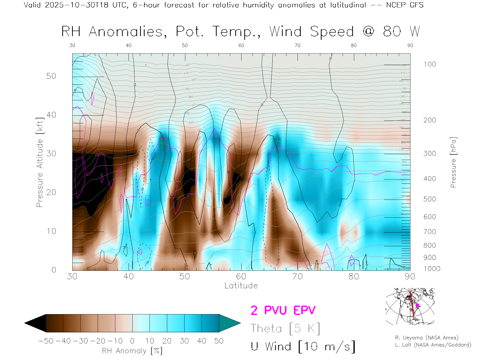 NCEP GFS Forecast Rel. Hum. X-Section (80 W)