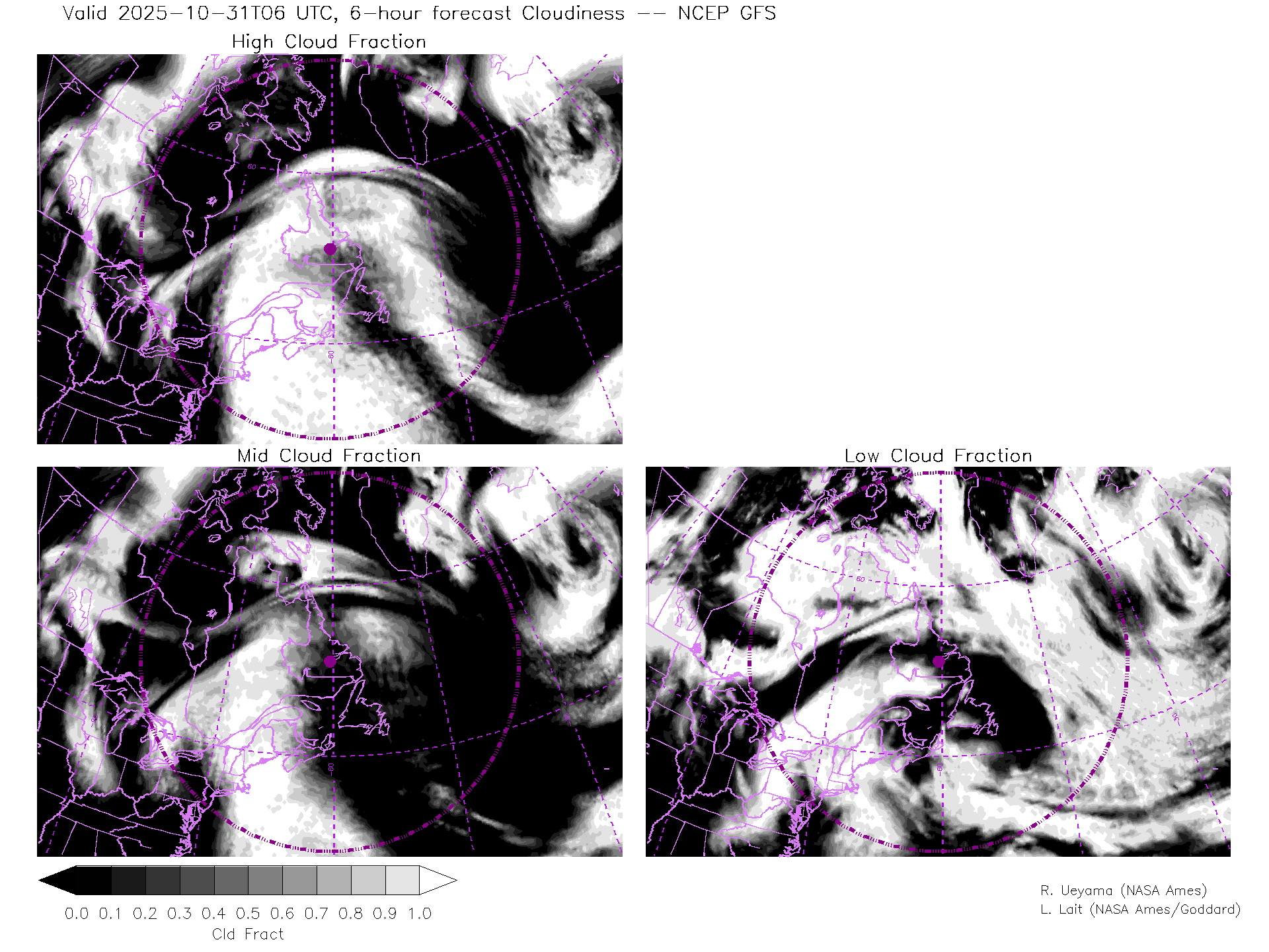 NCEP GFS Forecast Cloud Fraction (High, Mid, Low)