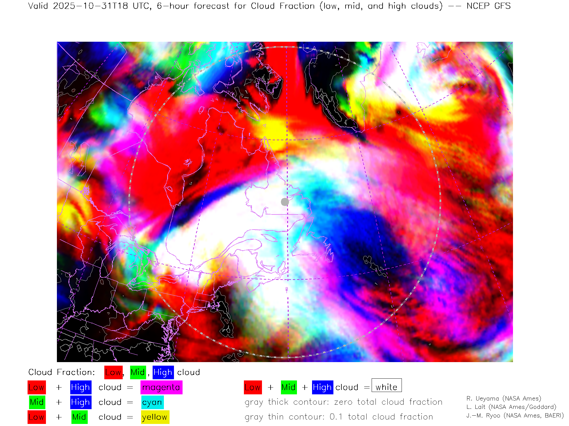 NCEP GFS Forecast Low-, Mid- and High-level Cloud Fraction