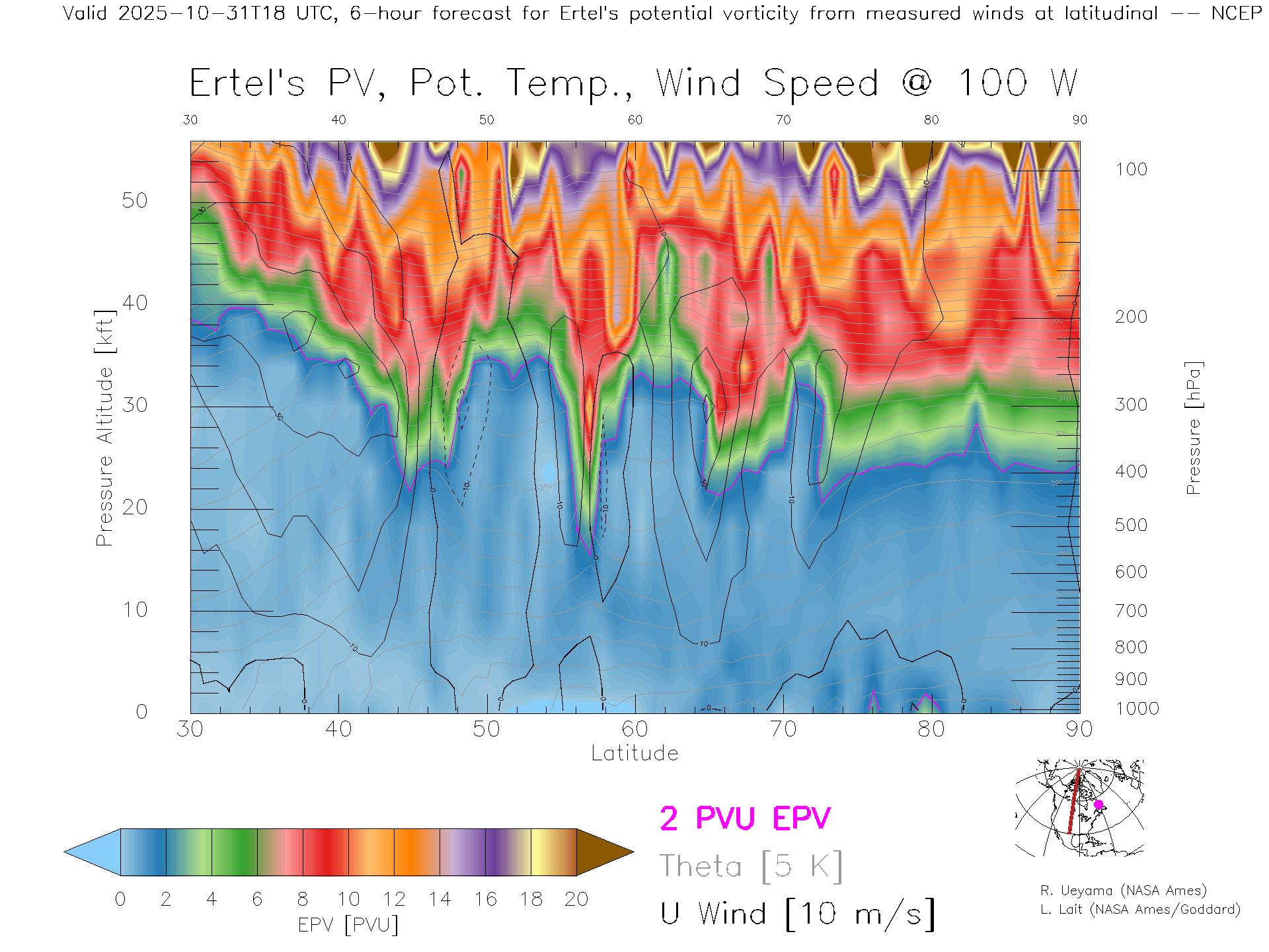 NCEP GFS Forecast PV X-Section (100 W)