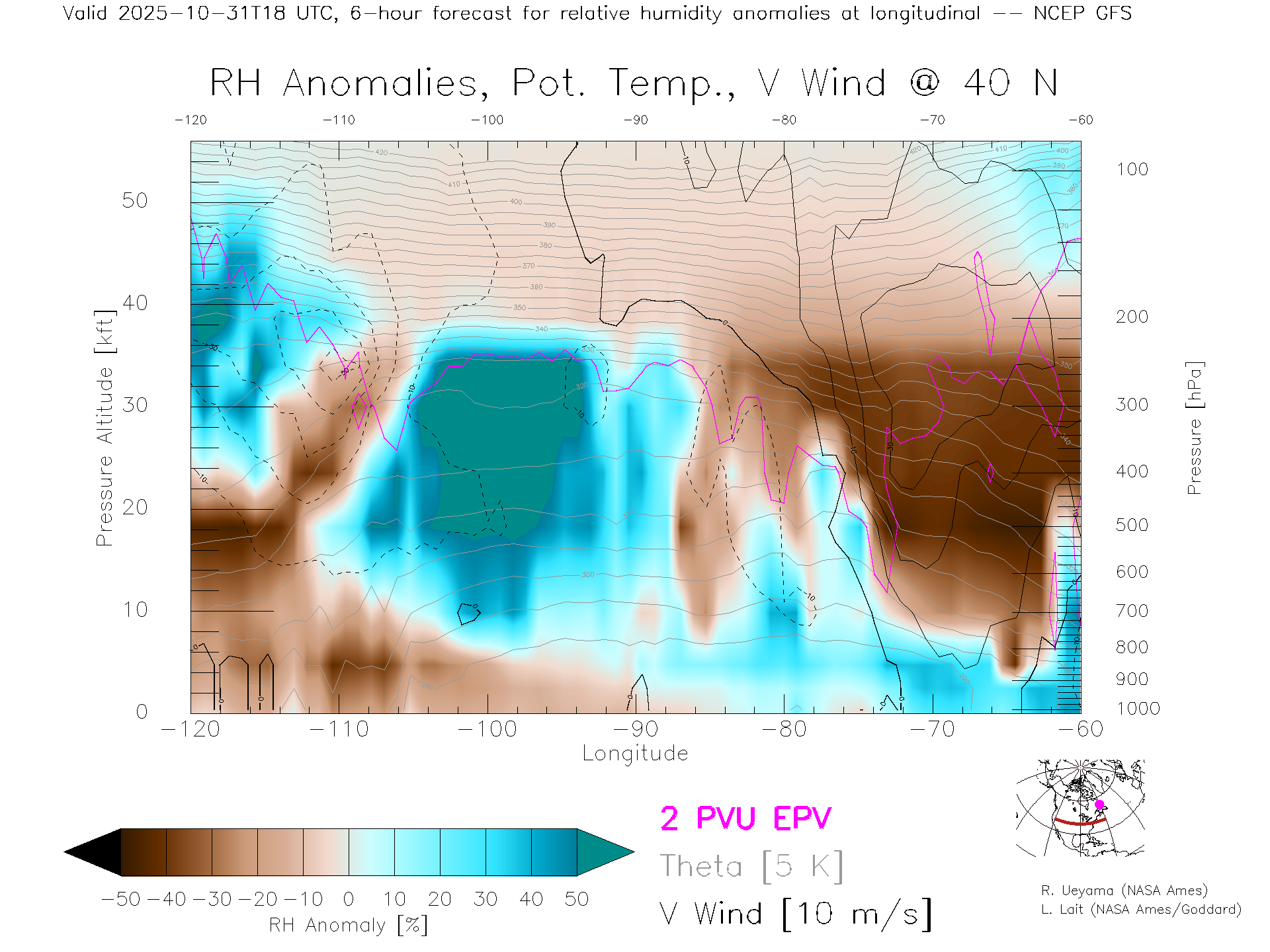 NCEP GFS Forecast Rel. Hum. X-Section (40 N)
