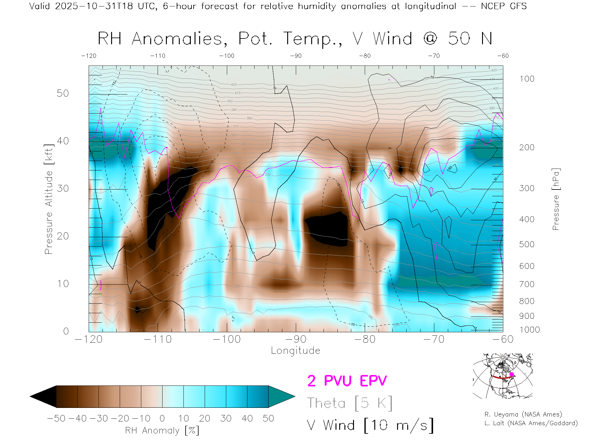 NCEP GFS Forecast Rel. Hum. X-Section (50 N)
