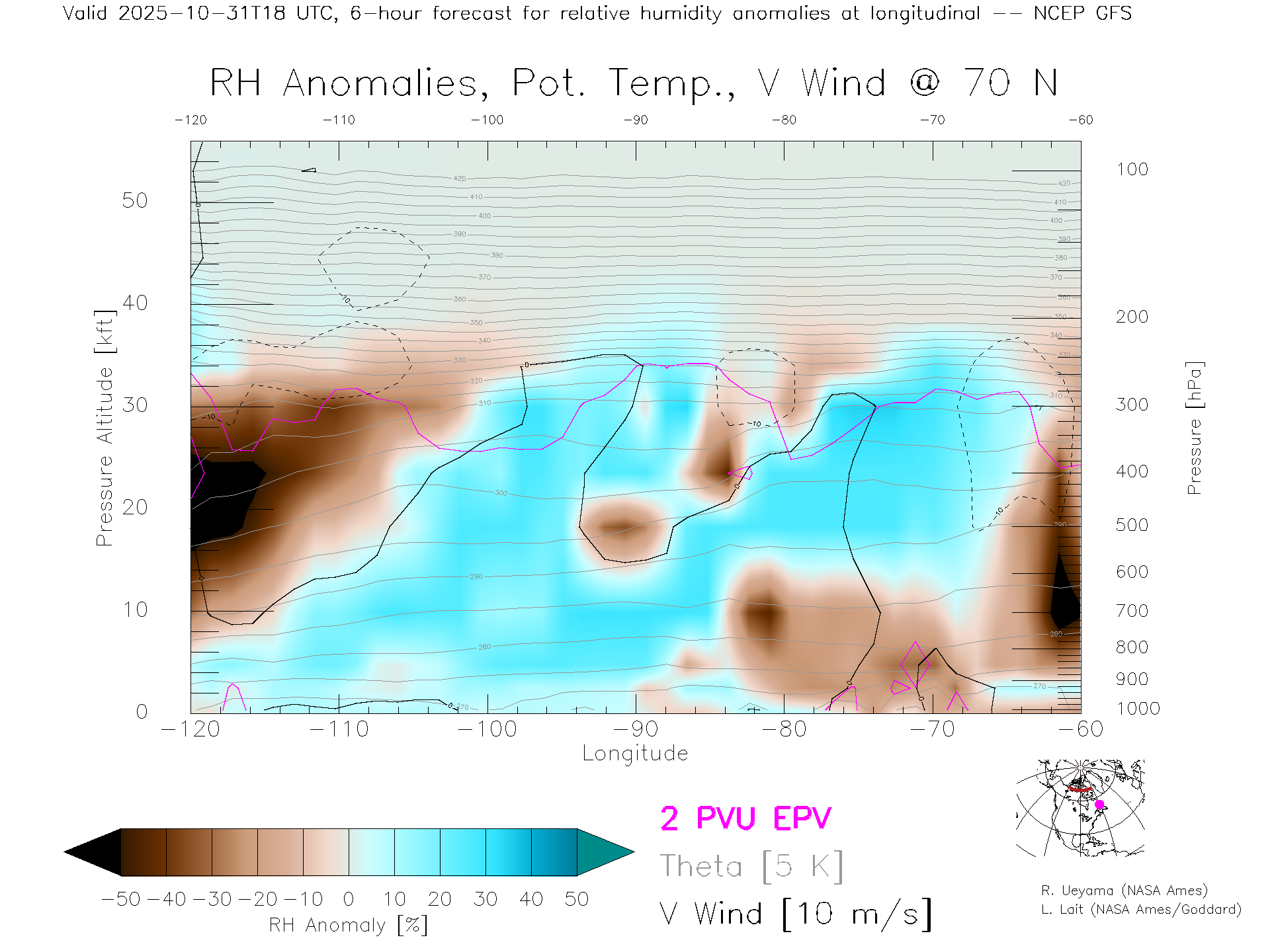 NCEP GFS Forecast Rel. Hum. X-Section (70 N)
