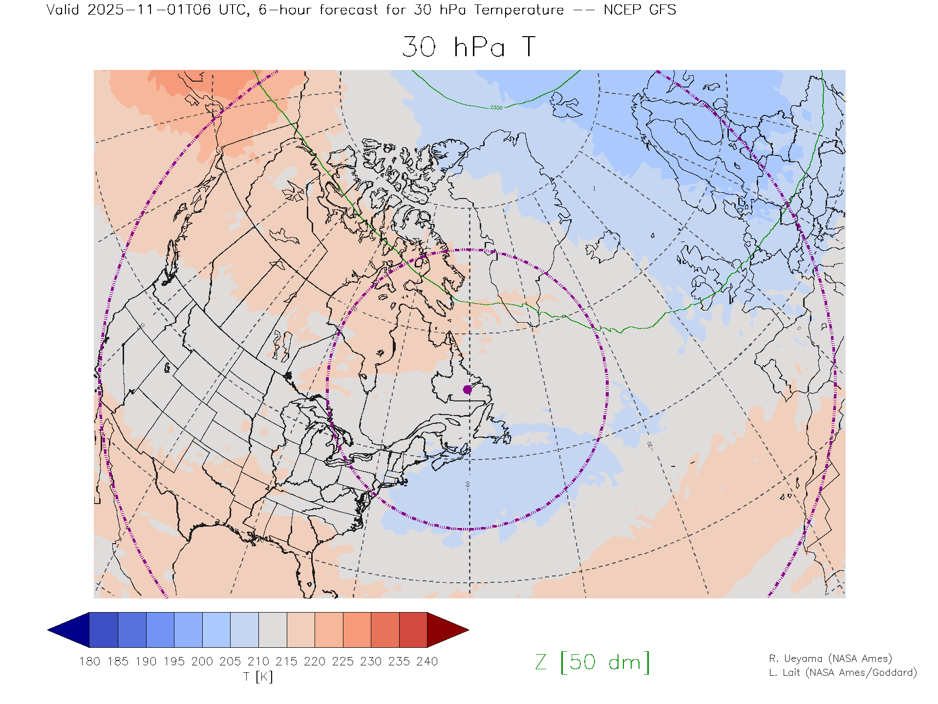 NCEP GFS Forecast 30 hPa Temp.