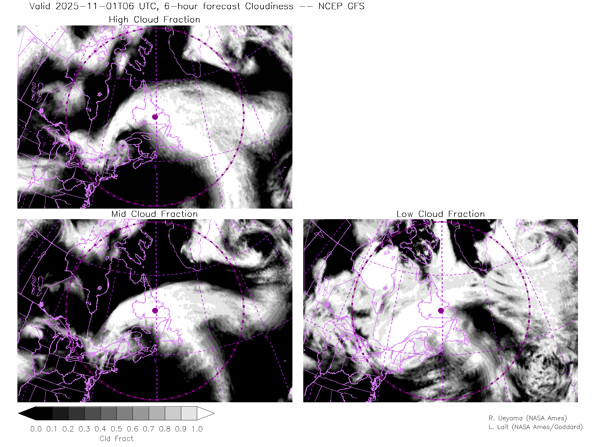 NCEP GFS Forecast Cloud Fraction (High, Mid, Low)
