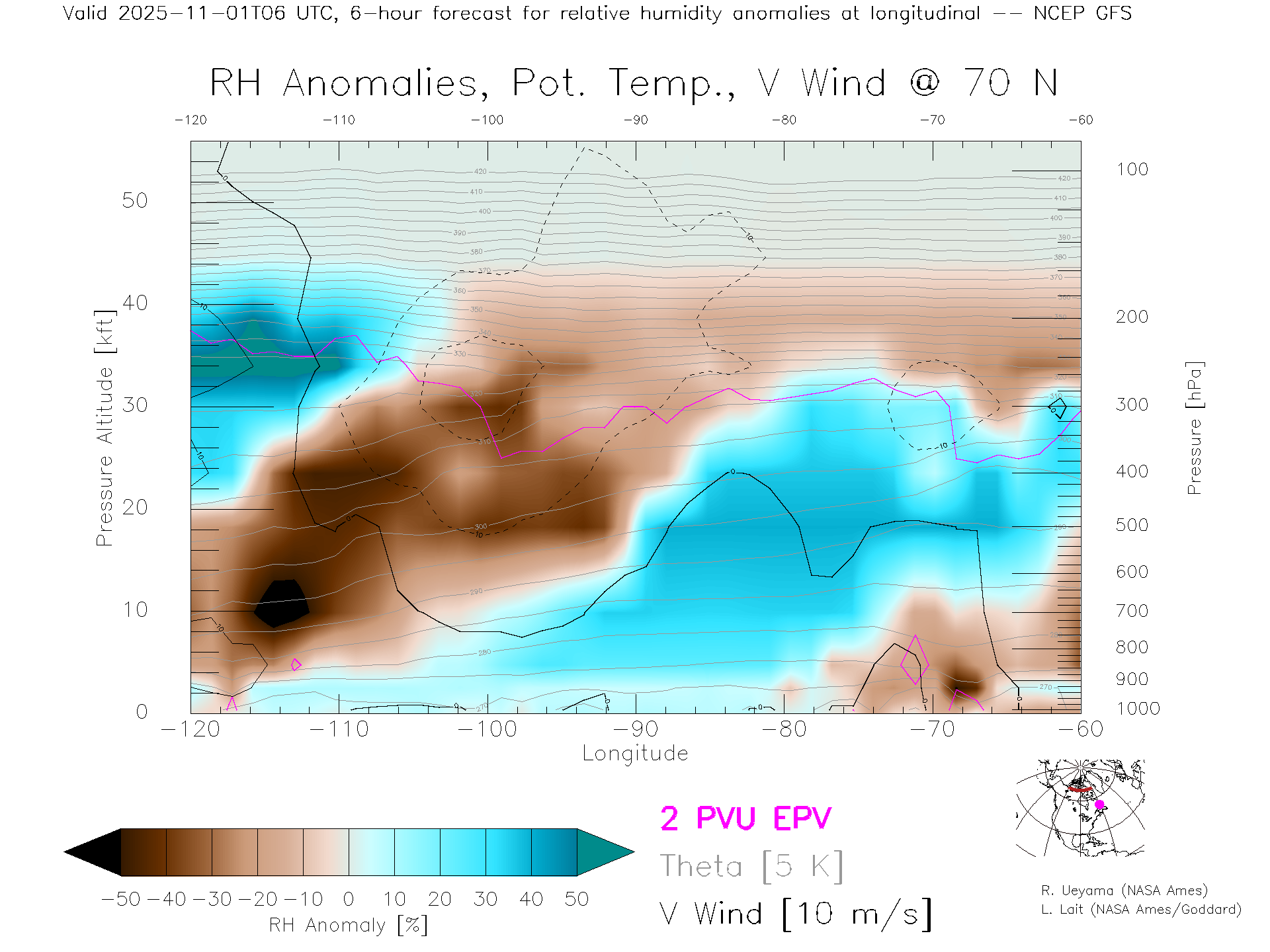 NCEP GFS Forecast Rel. Hum. X-Section (70 N)