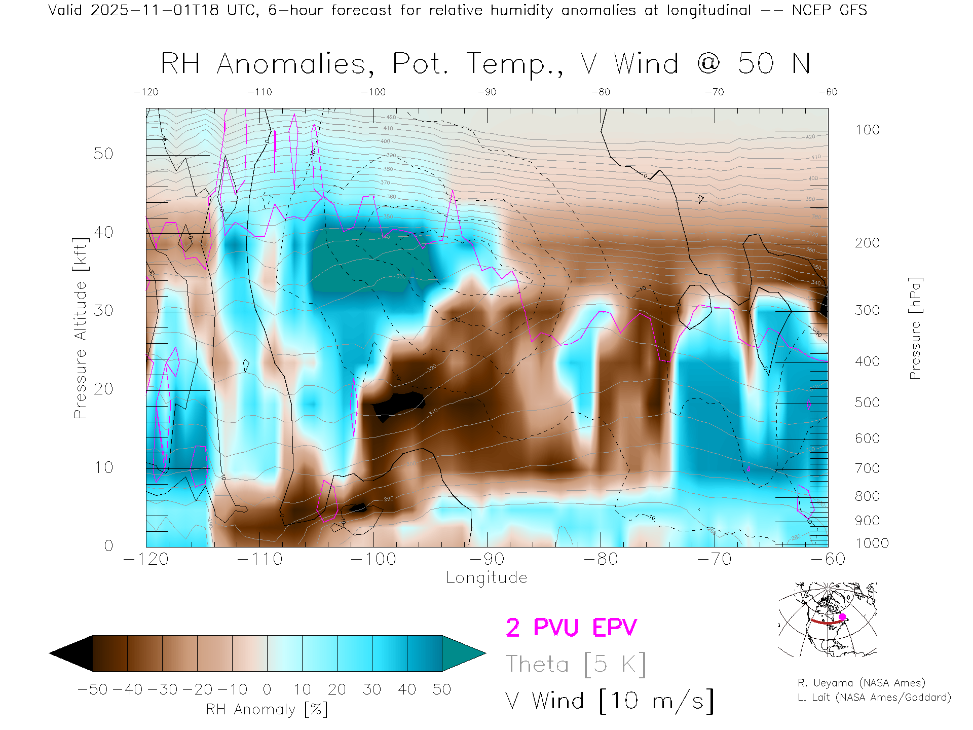 NCEP GFS Forecast Rel. Hum. X-Section (50 N)