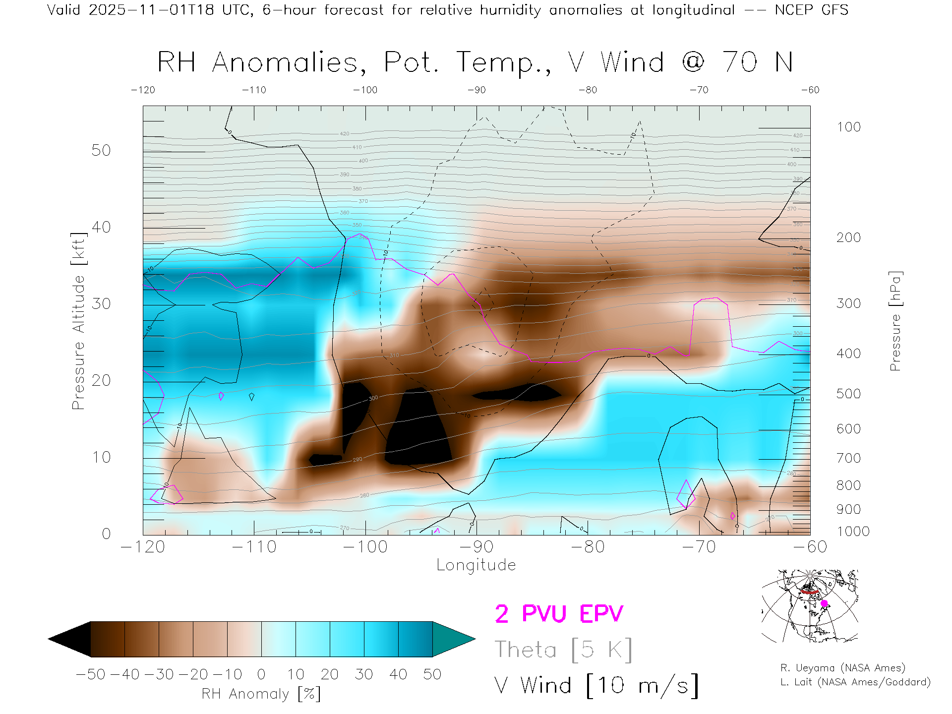 NCEP GFS Forecast Rel. Hum. X-Section (70 N)