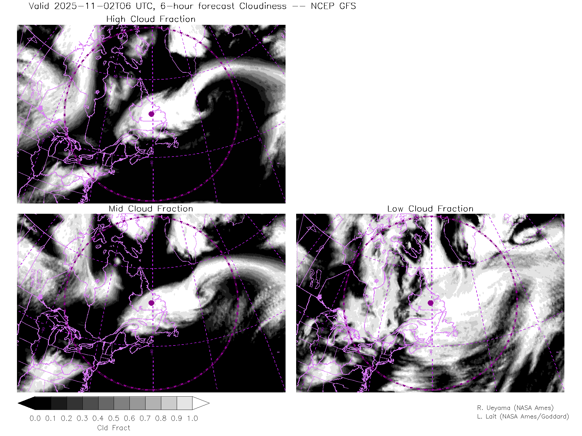 NCEP GFS Forecast Cloud Fraction (High, Mid, Low)