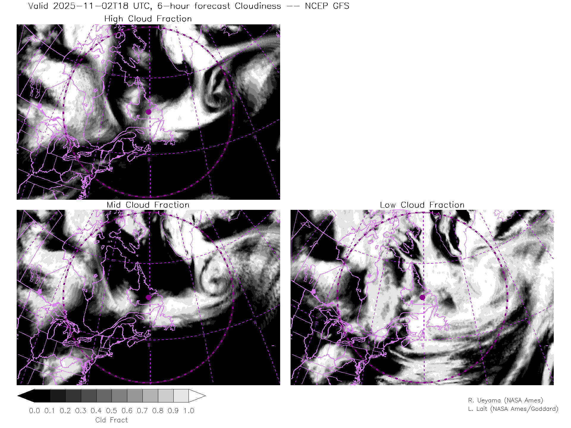NCEP GFS Forecast Cloud Fraction (High, Mid, Low)